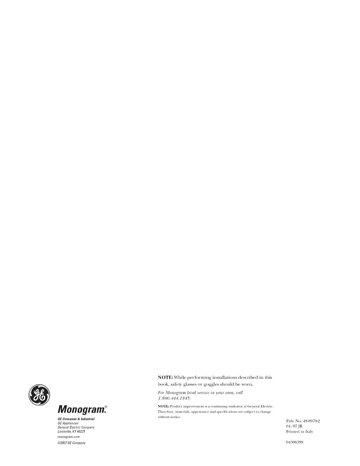 Note to Installer - Be sure to leave these instructions with the Consumer.