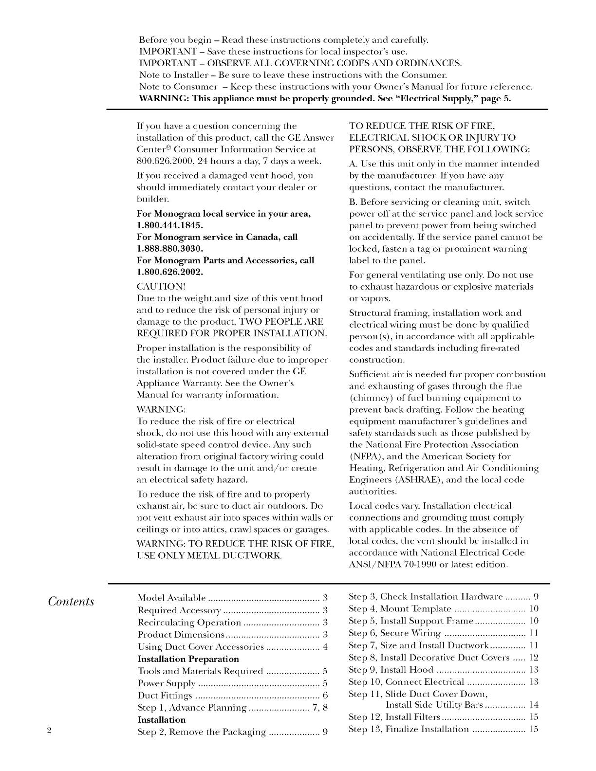 User Manual: GE GE Range Hood Manual GE Range Hood Owner's Manual, GE Range Hood installation guides