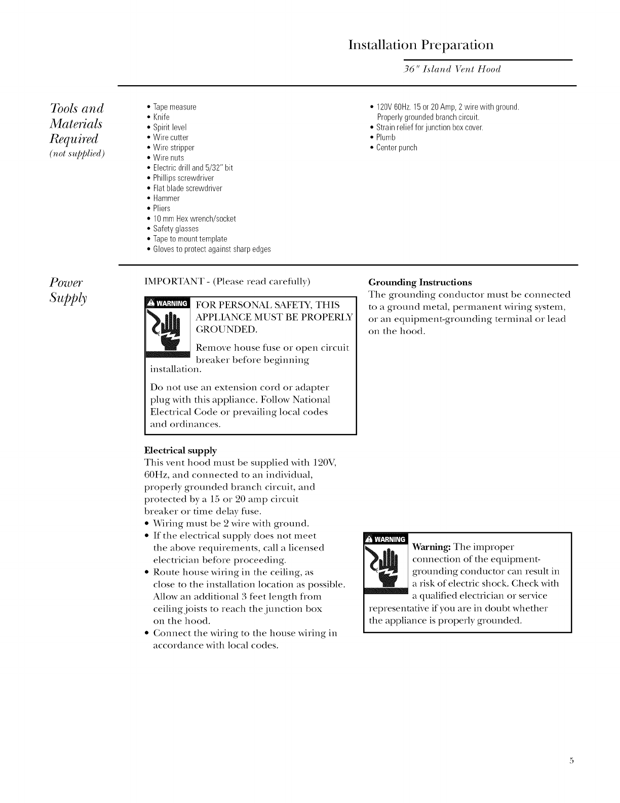 WARNING: This appliance must be properly grounded. See "Electrical Supply," page 5.