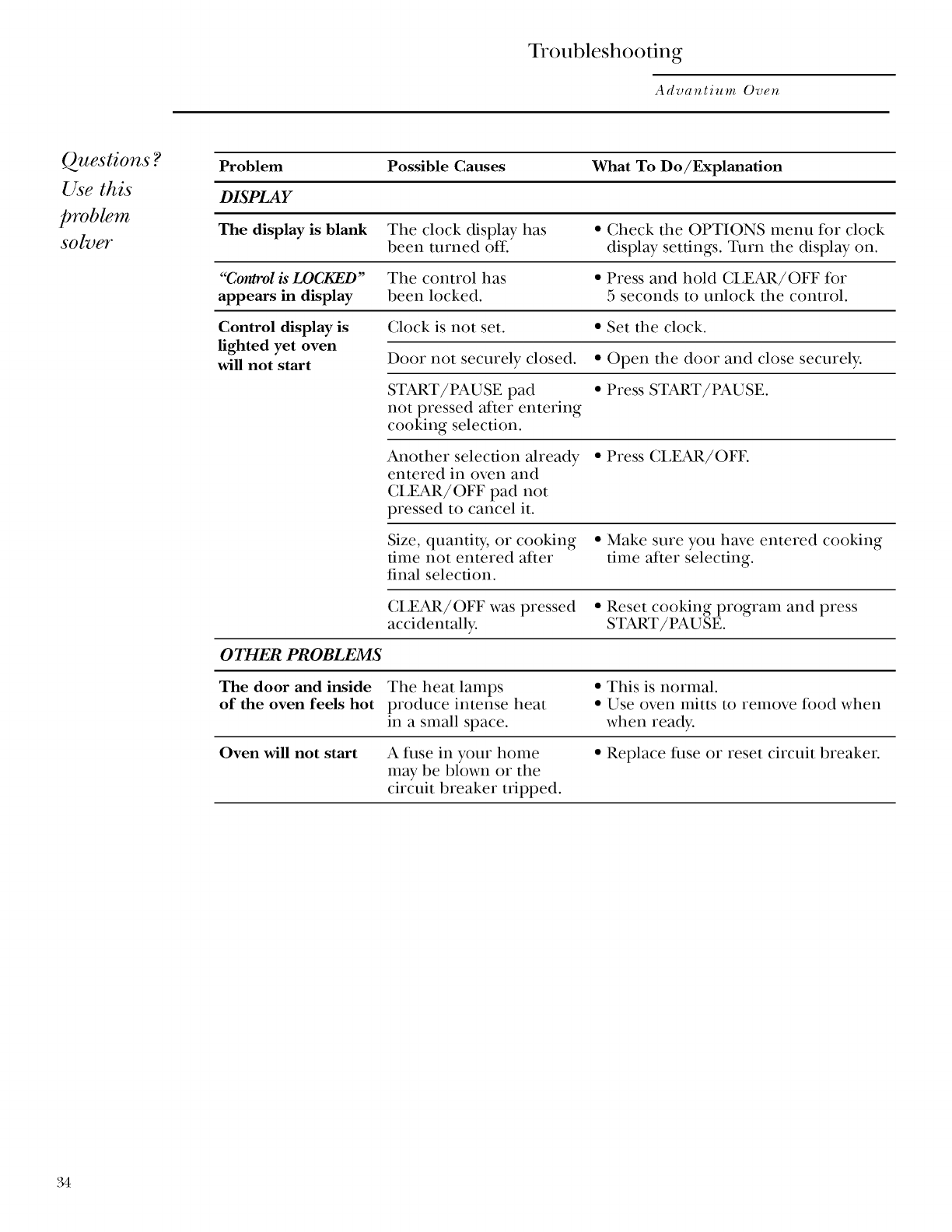 Oven will not start A fuse in your home • Replace fuse or reset circuit breaker.