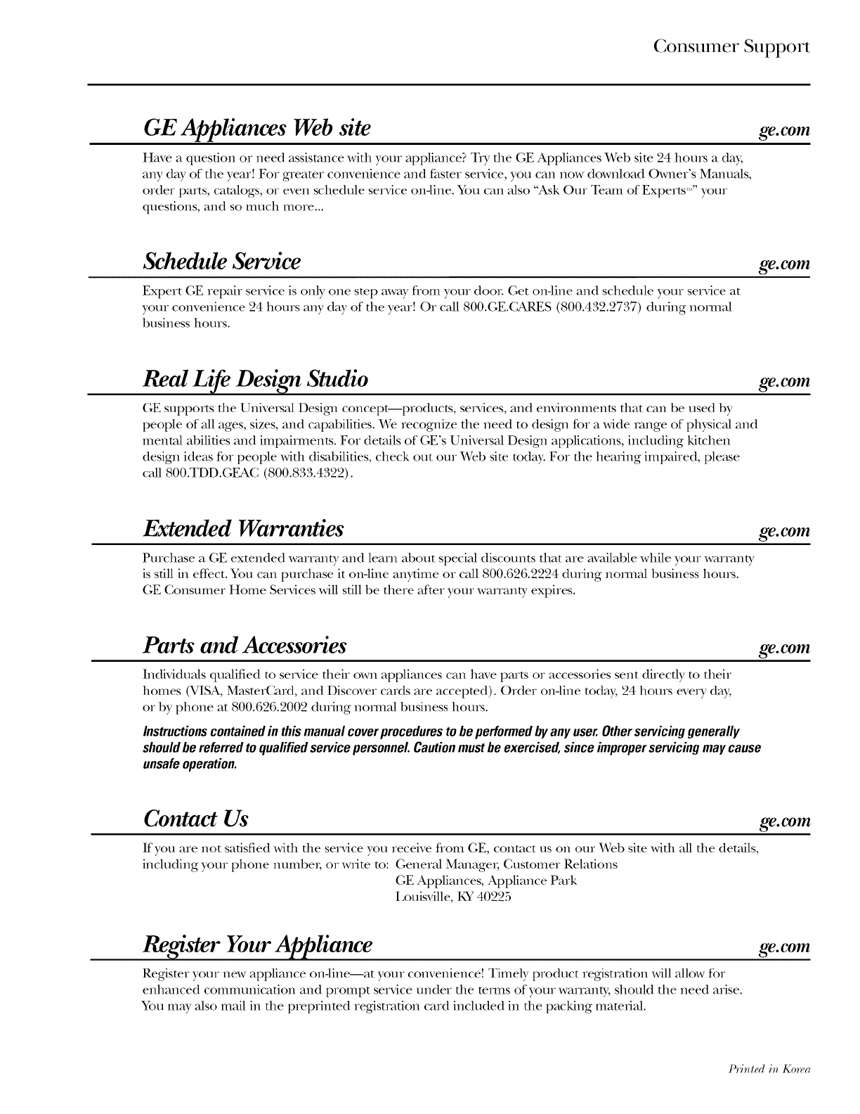 your convenience 24 hours any day of the year! Or call 800.GE.CARES 800.432.2737) during nomml