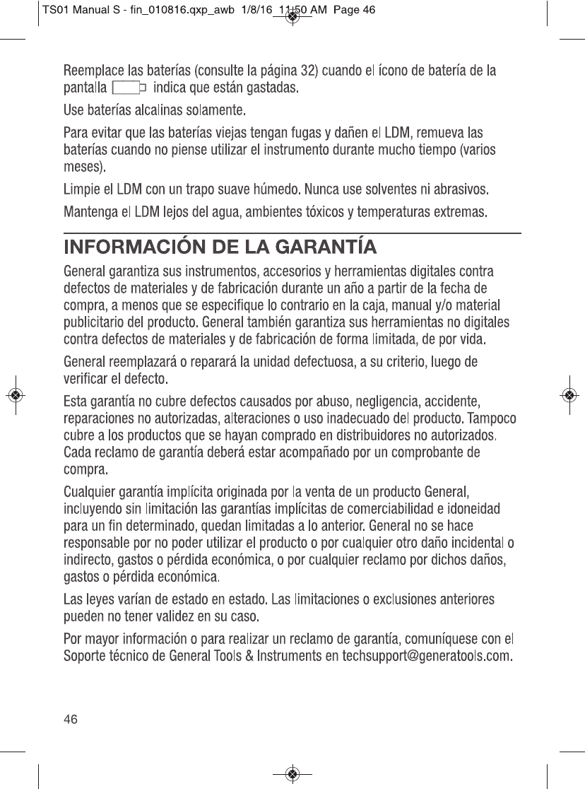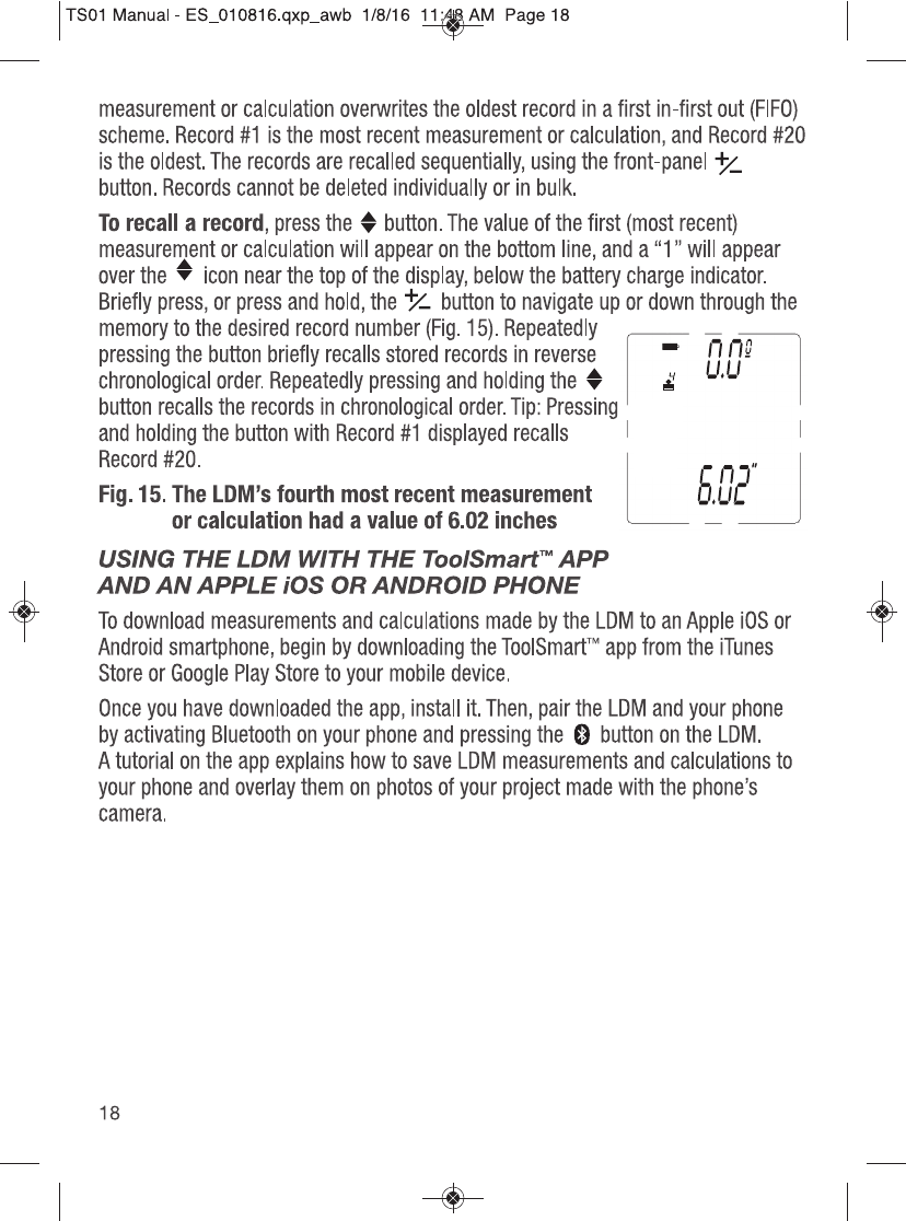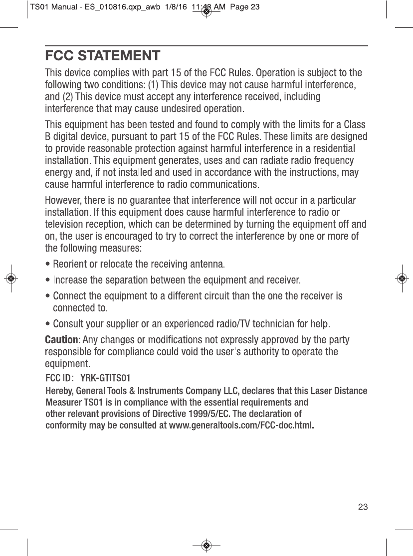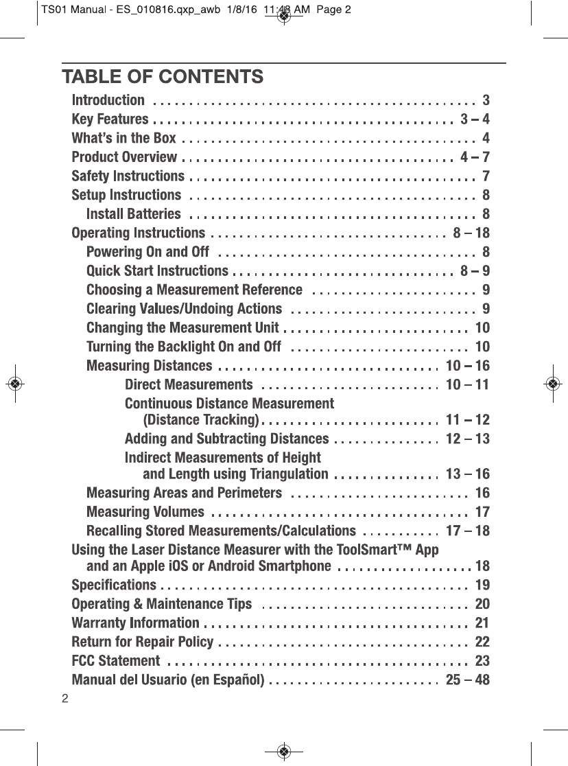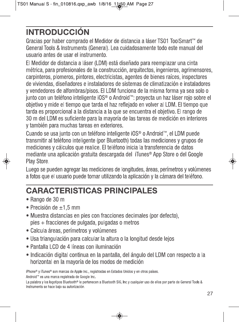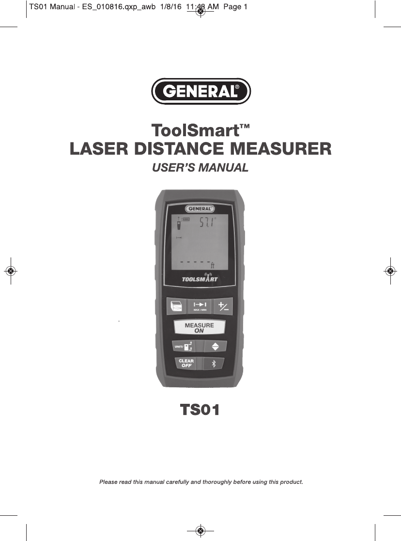 GENERAL TOOLS & INSTRUMENTS COMPANY LLC ToolSmart Bluetooth Enabled Laser Distance Meter TS01 Manual