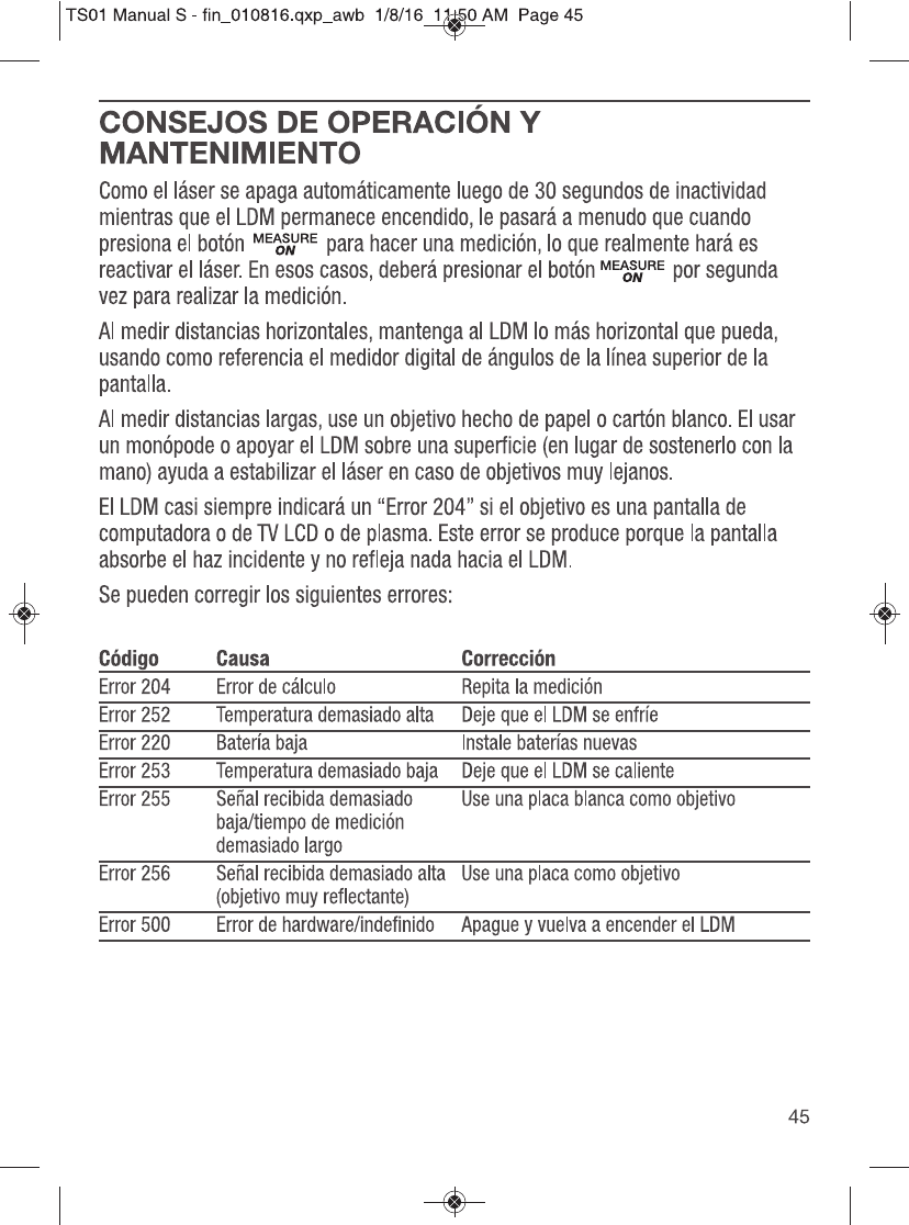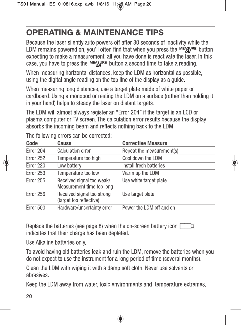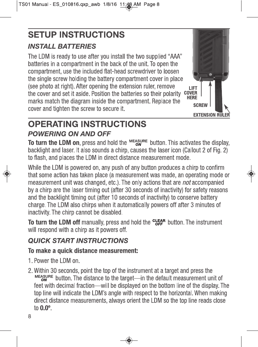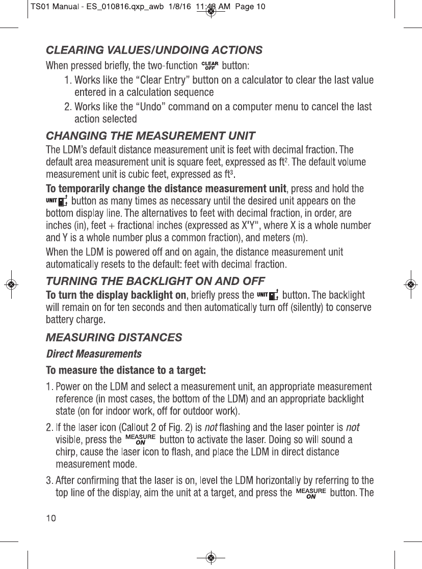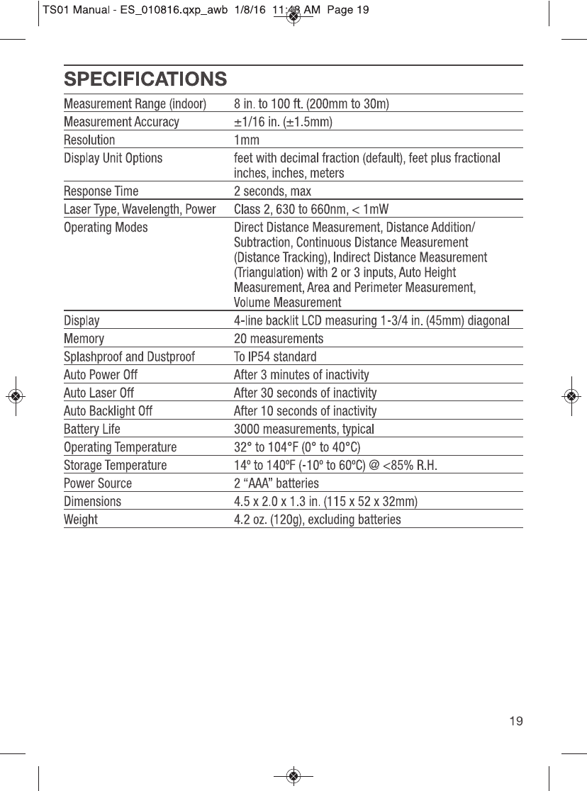 GENERAL TOOLS and INSTRUMENTS GTITS01 ToolSmart Bluetooth Enabled Laser Distance Meter User Manual TS01 Manual