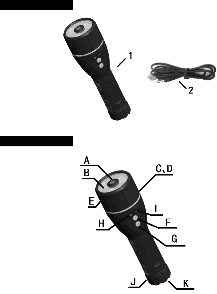 1.video flashlight ×1 2.USB charging/interface cable ×1