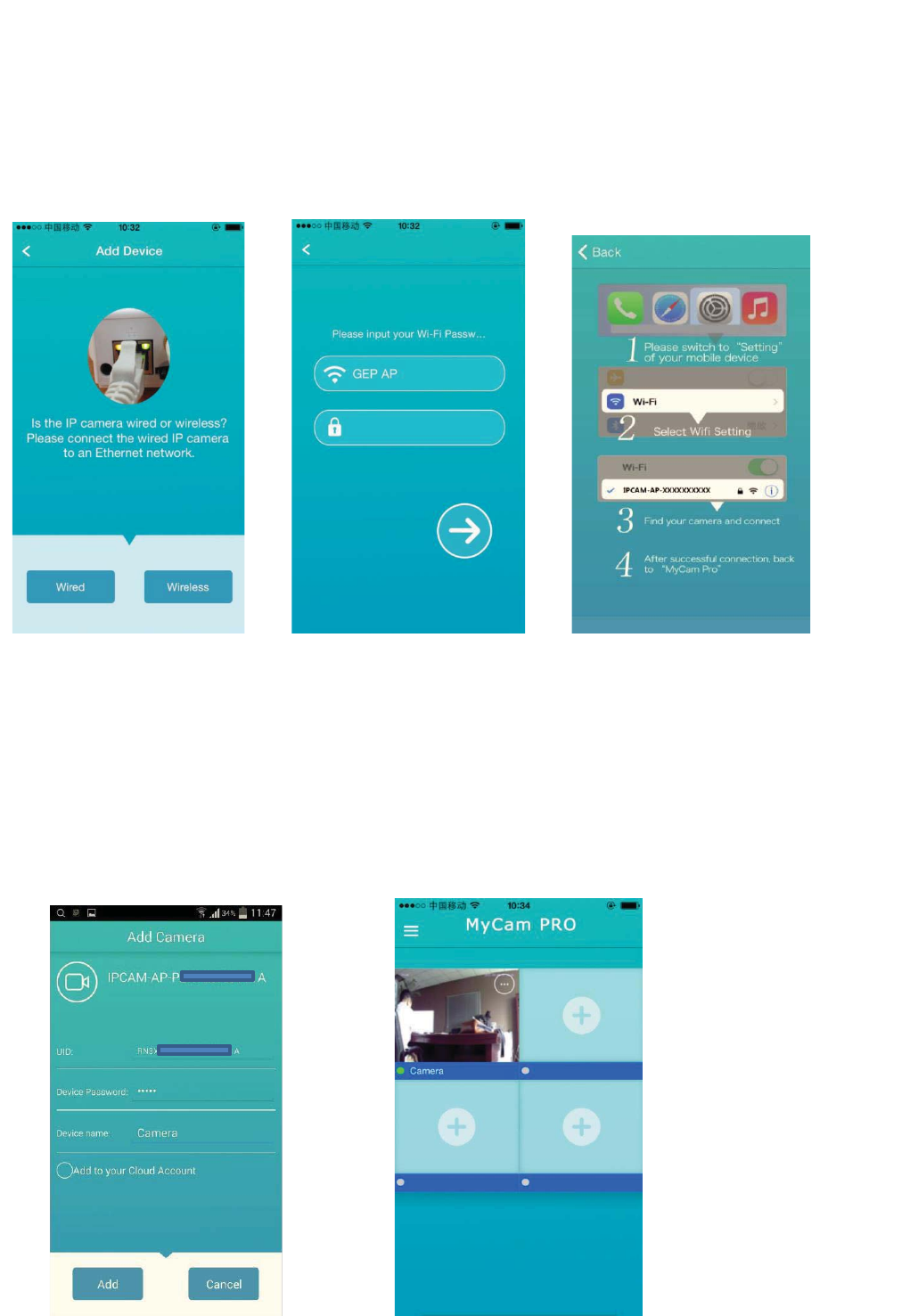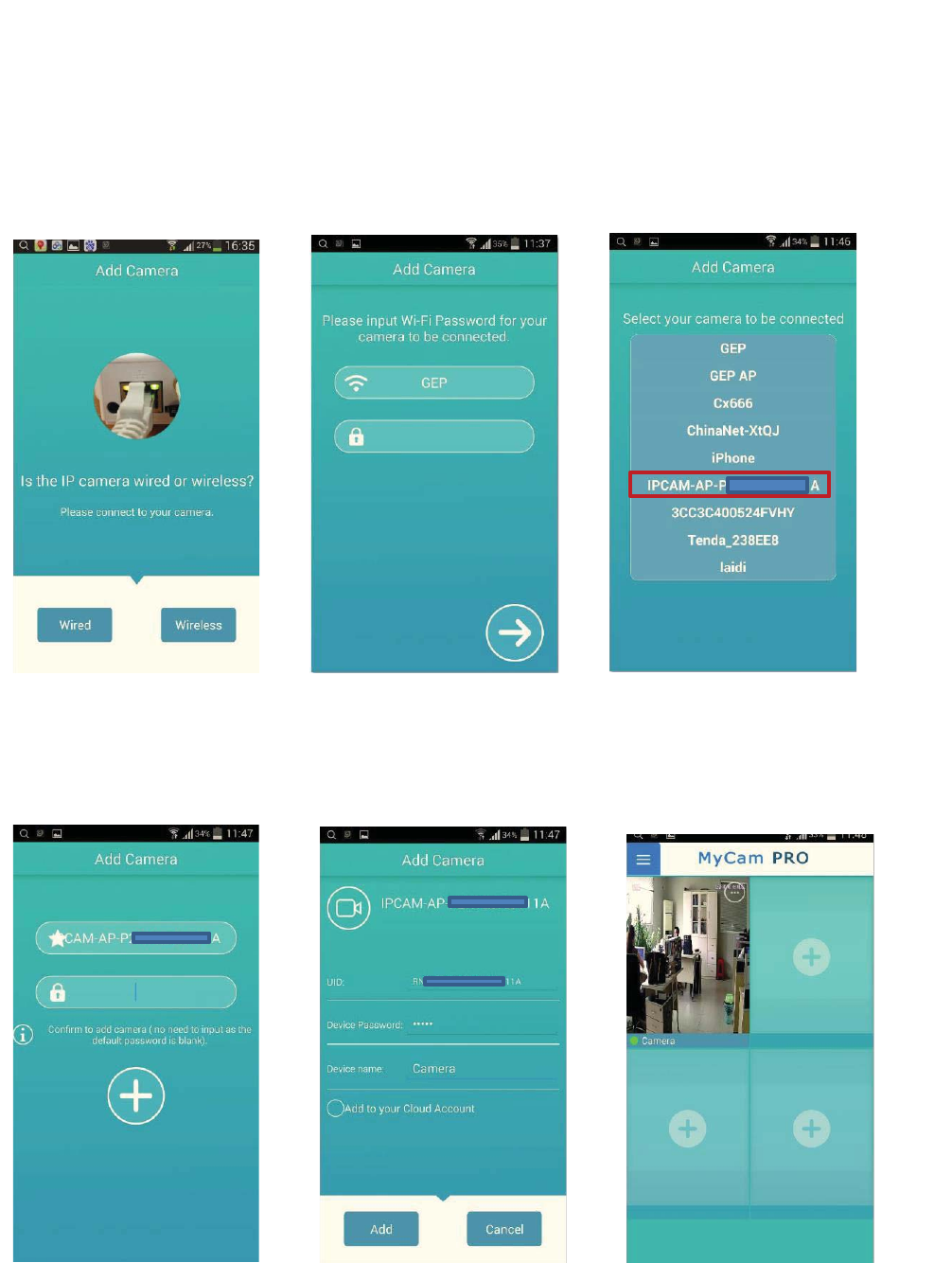 network as the camera. If not, input the UID and device password to add. Device UID can
