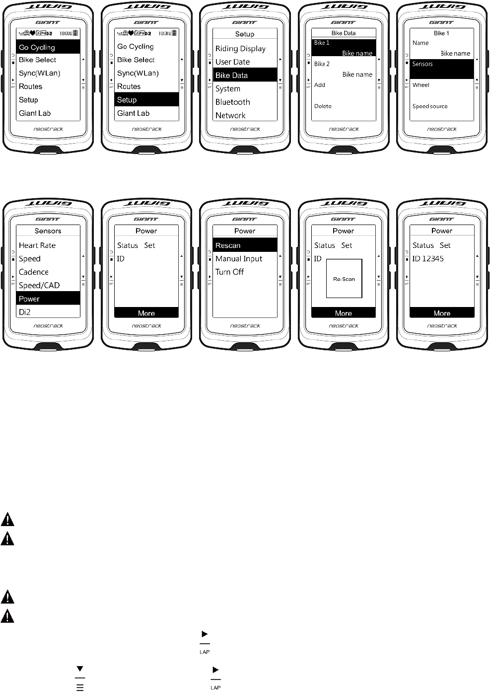 Please ensure that the Giant Power Pro has been paired with the cycling computer and has proceeded