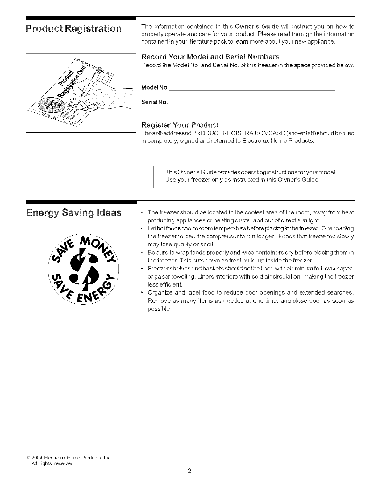 Record the Model No. and Serial No. of this freezer in the space provided below.