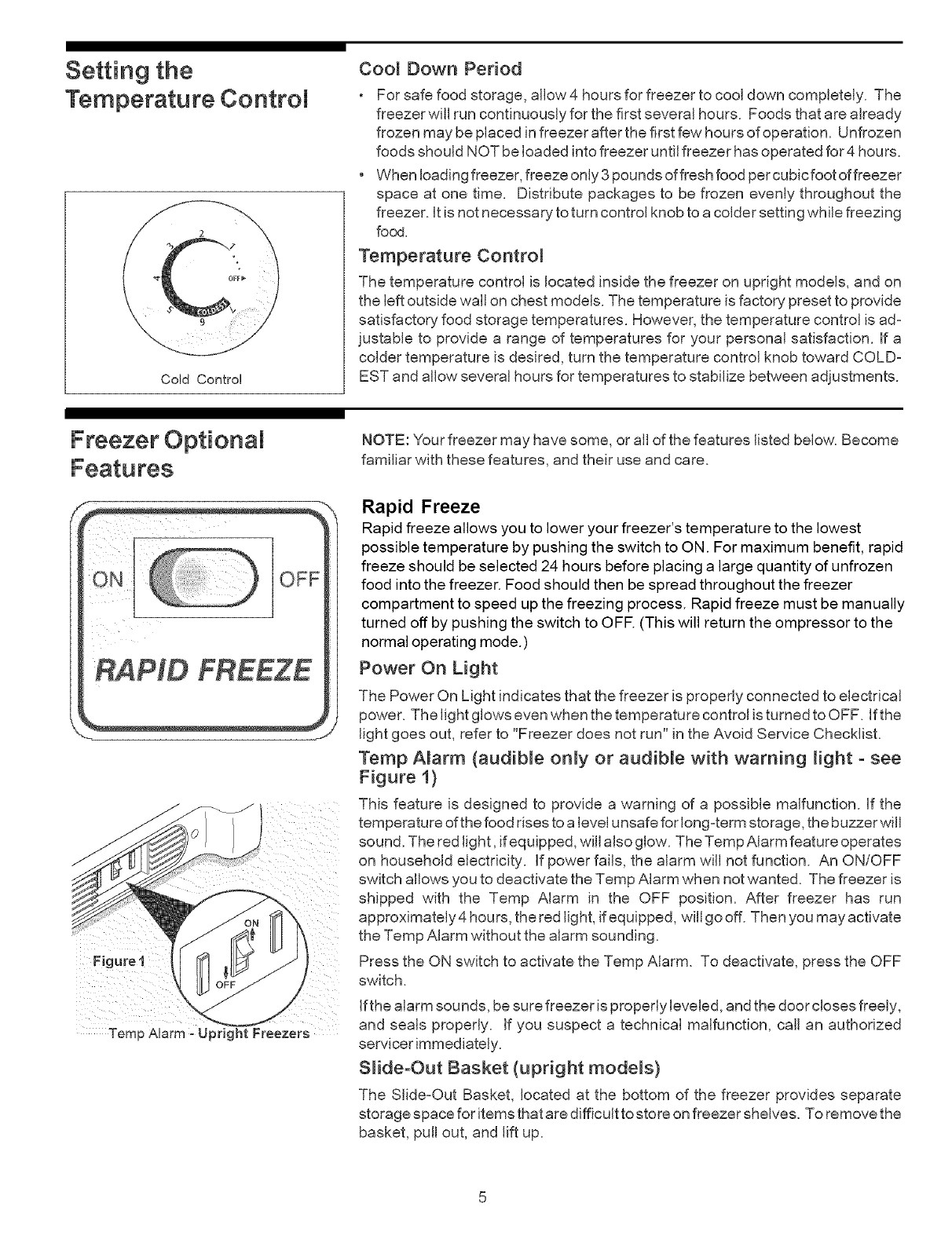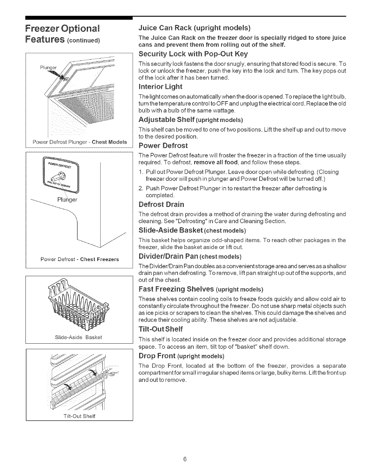 Freezer Optional Features ....... 5 - 6