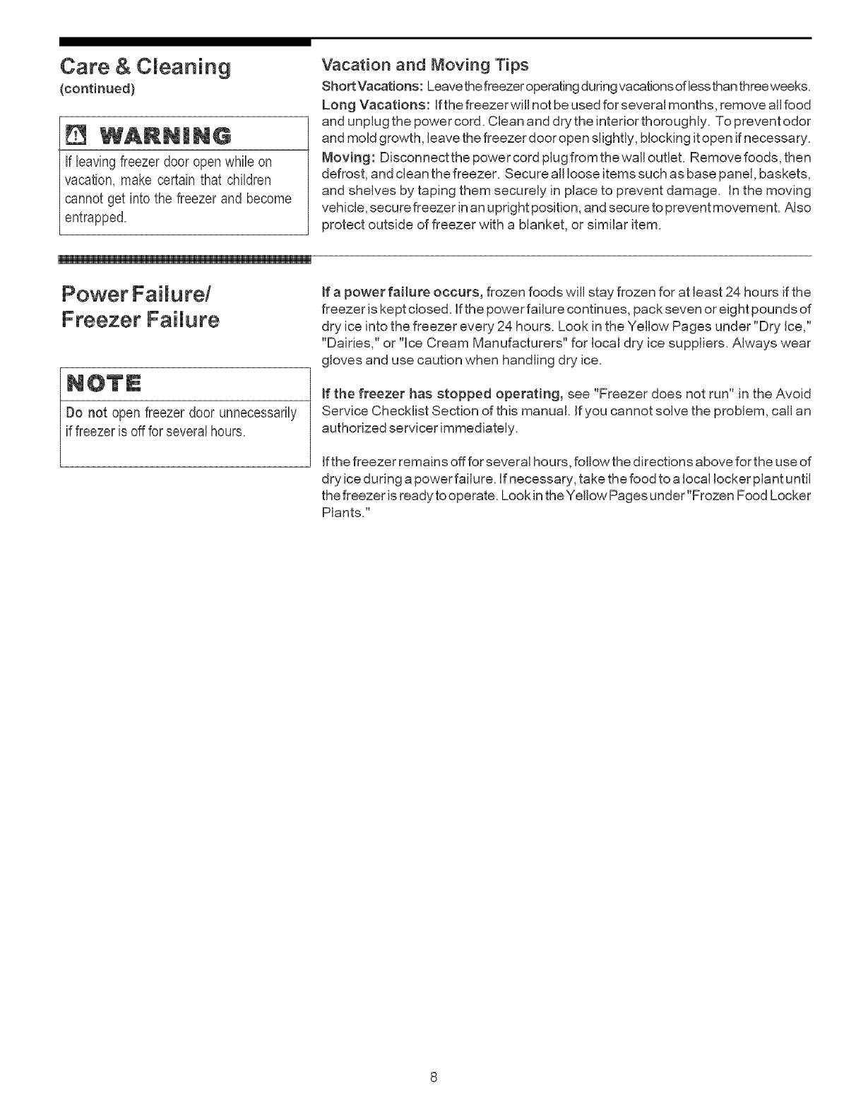 Power Failure/Freezer Failure ....... 8