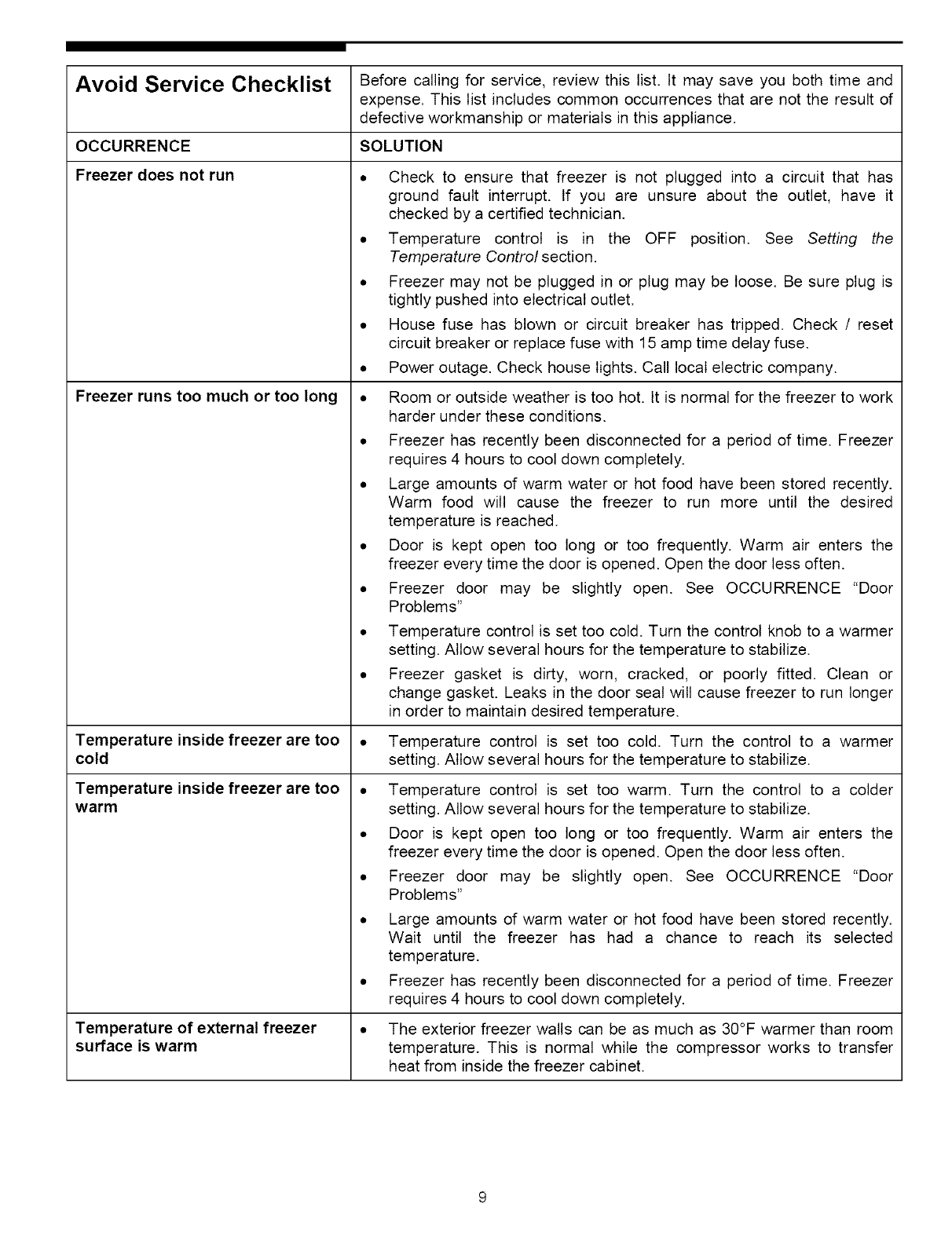 Avoid Service Checklist ........ 9 - 10