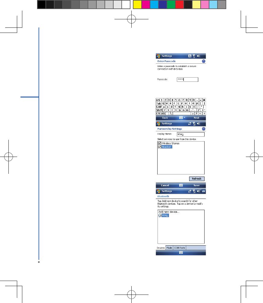 1. Execute ActiveSync Help on the PC and follow the instructions for conguring Bluetooth on your PC to support