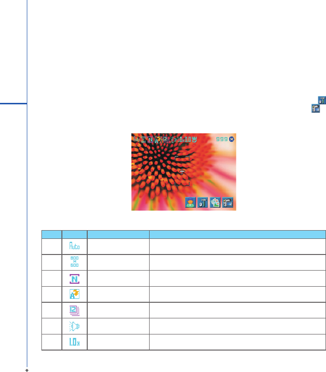15 Front camera lens Tap this icon to take picture from the front lens.