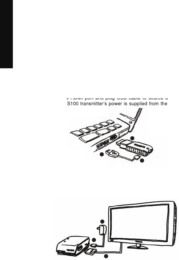 WS100 e il cavo USB al dispositivo sorgente. Collegare SkyVision alla porta HDMI