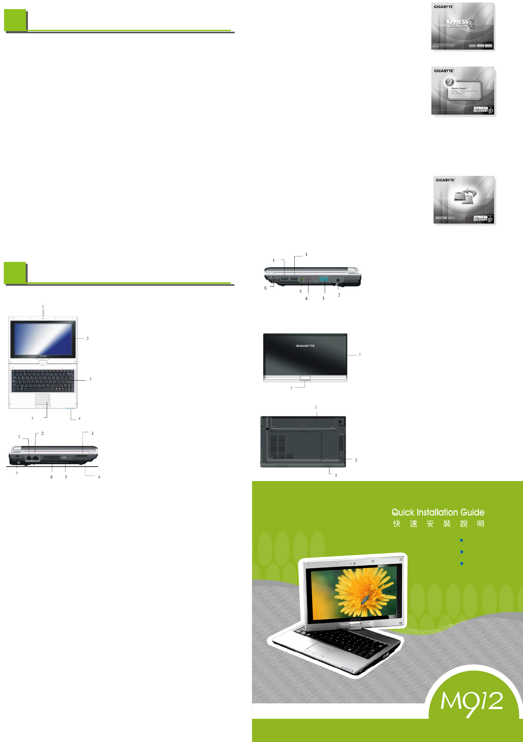 GIGABYTE製品をお買いいただき、誠にありがとうございます。 このクィックスタートガイドの指示に従って、M704ウルトラモバイルPCの設定を
