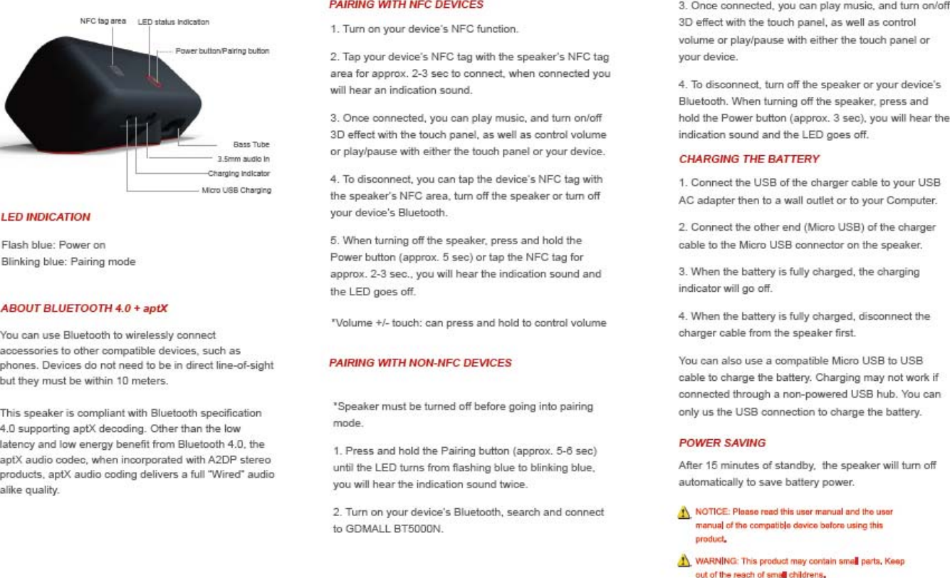 GLOBAL DIGITECH CO GDMALLBT5000N BLUETOOTH SPEAKER User Manual 1