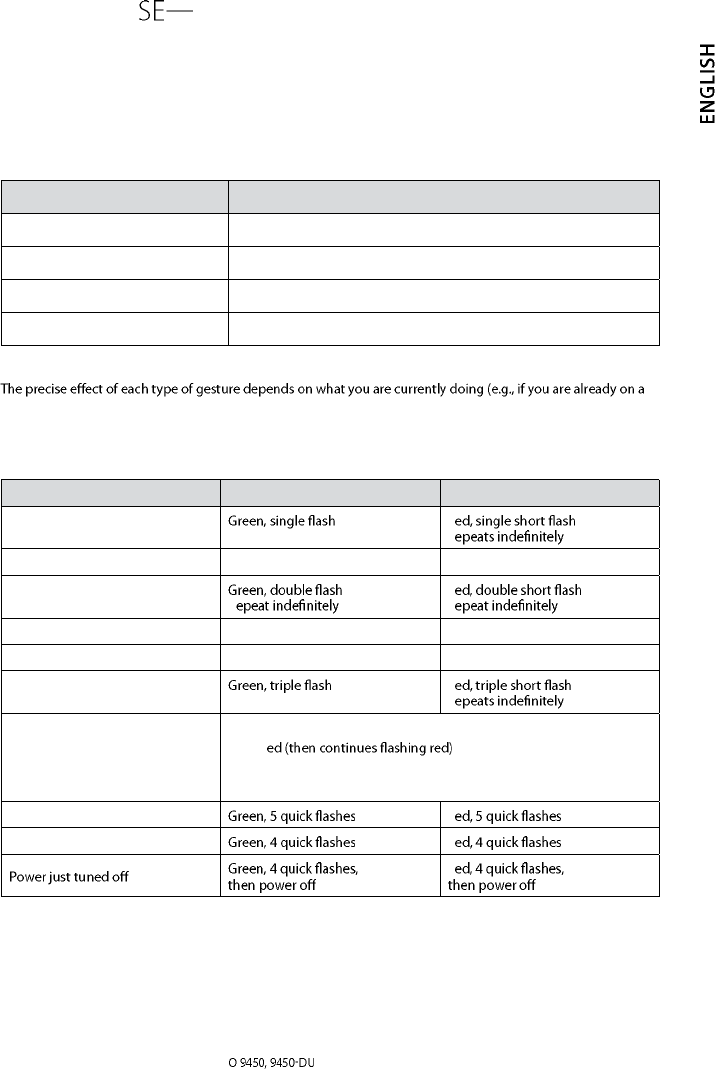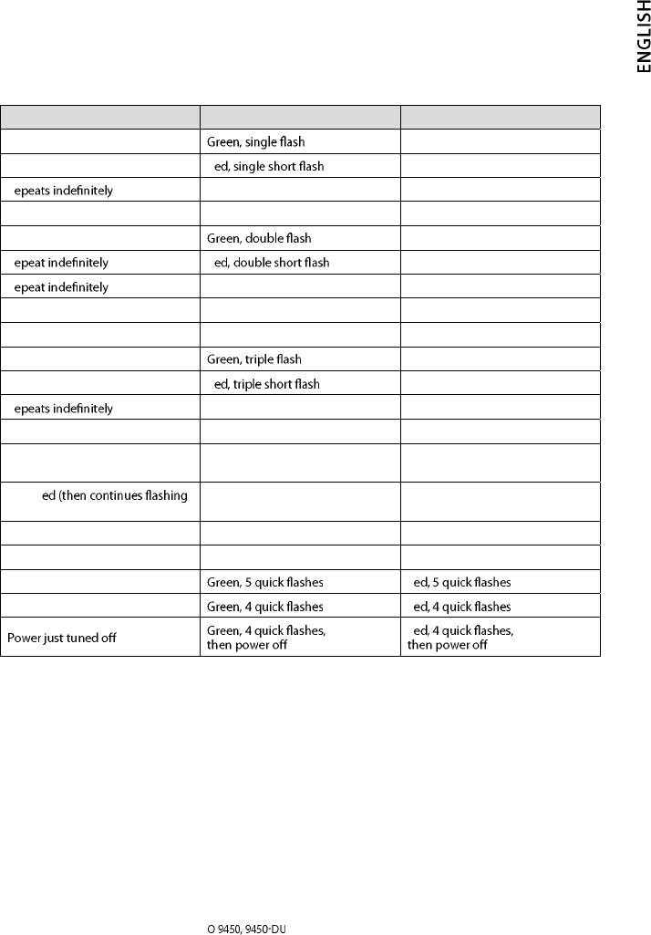 Battery low Two very quick, low tones; repeats occasion-