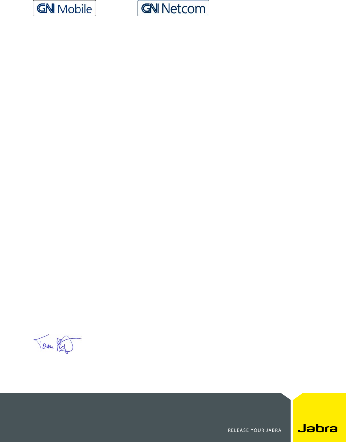 GN Netcom Inc Jabra BT125 Bluetooth Headset Addendum