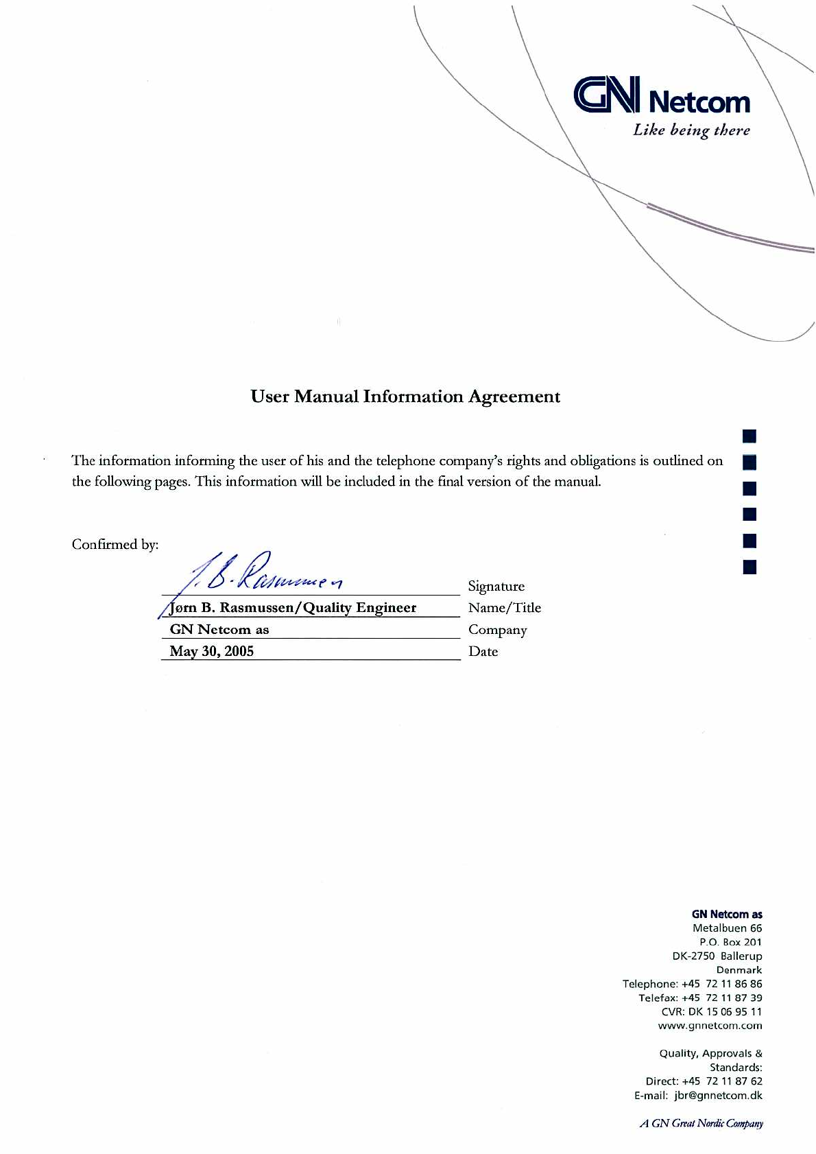 GN Netcom Inc BT500 Manual Agr