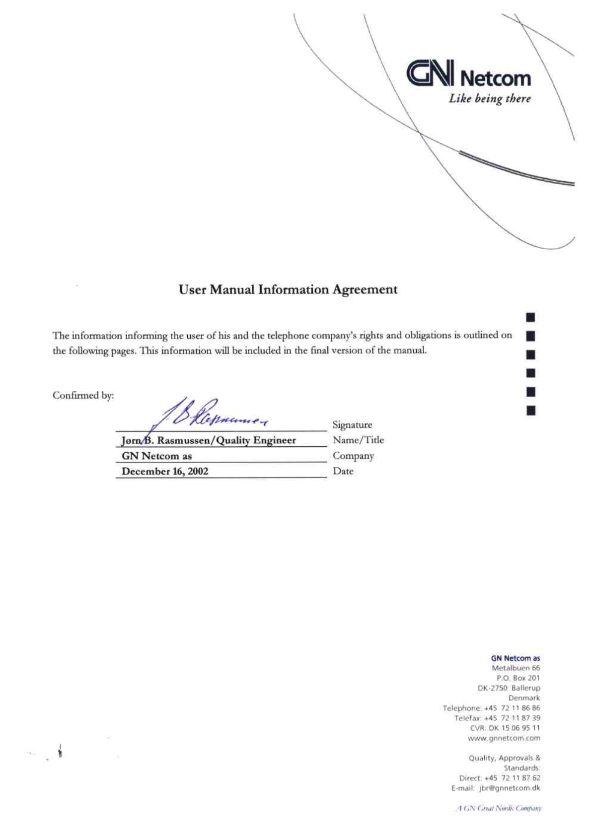 GN Audio USA GN9120 Cordless Phone User Manual aggreement