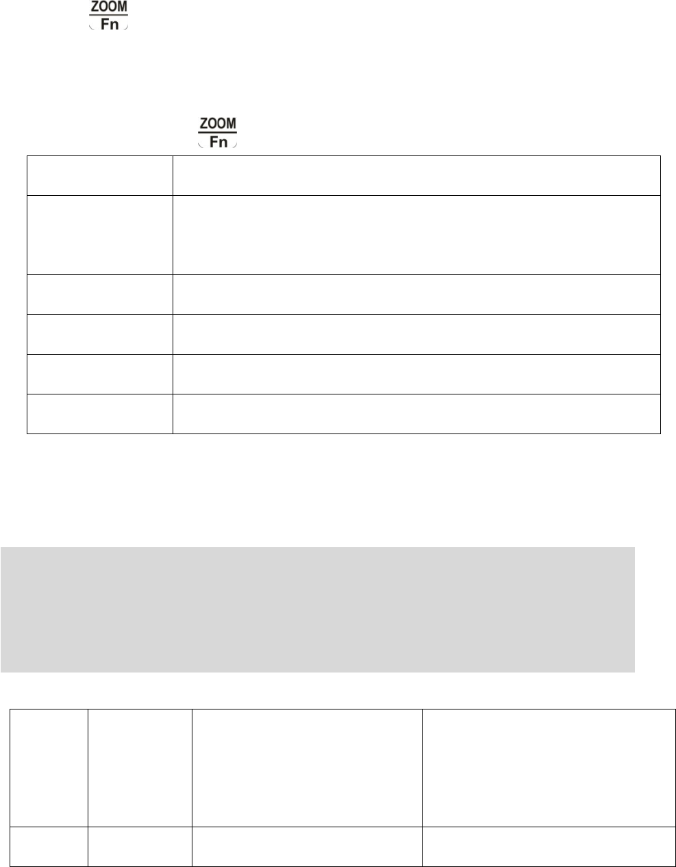 12. < > Zoom / Function Custom Button (Long Keypress)