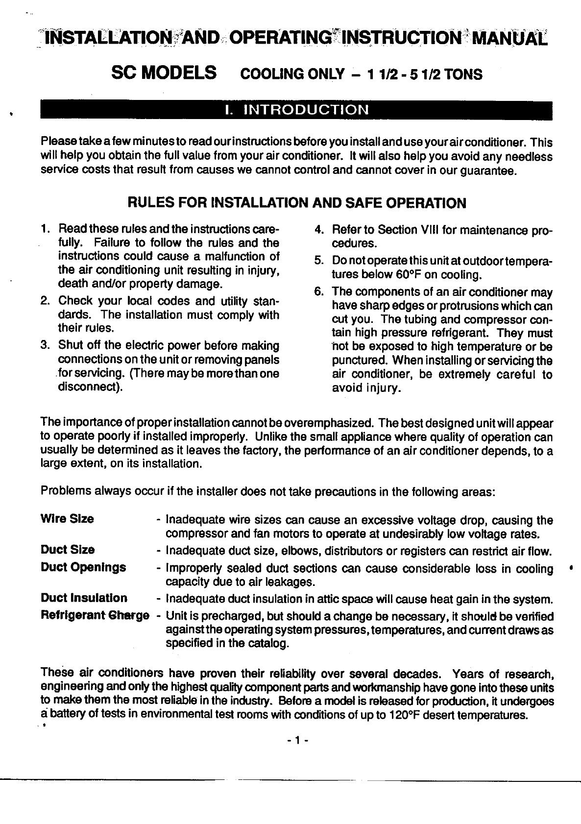 SC MODELS COOLING ONLY - 1 1/2 -S 1/2 TONS