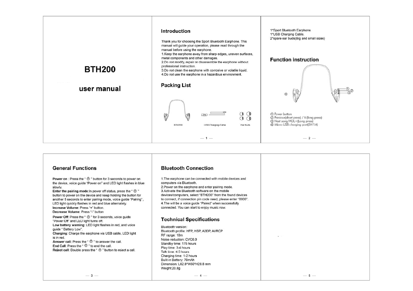 GOLD FINGERS TECHNOLOGY BTH200 Bluetooth Earphone User Manual C8ABD2B3D5D5C6AC