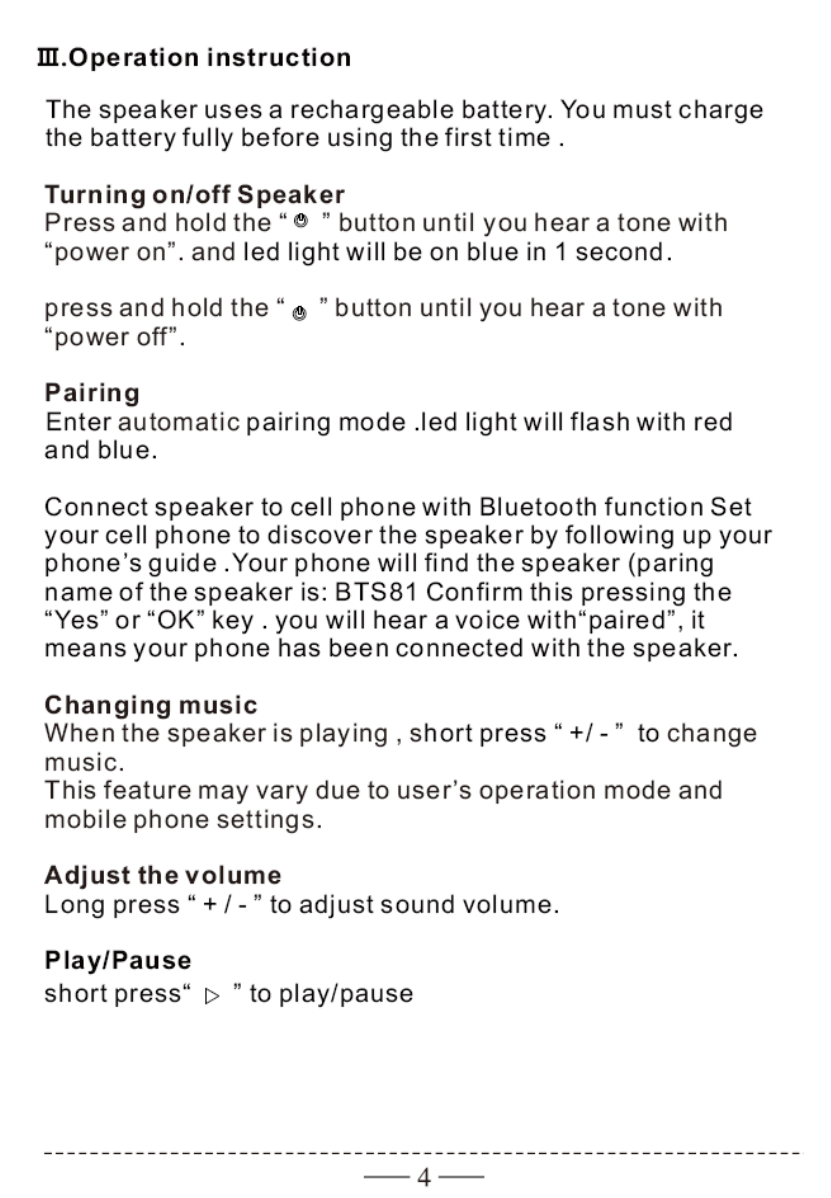 GOLD FINGERS TECHNOLOGY BTS81 Bluetooth speaker User Manual Manual