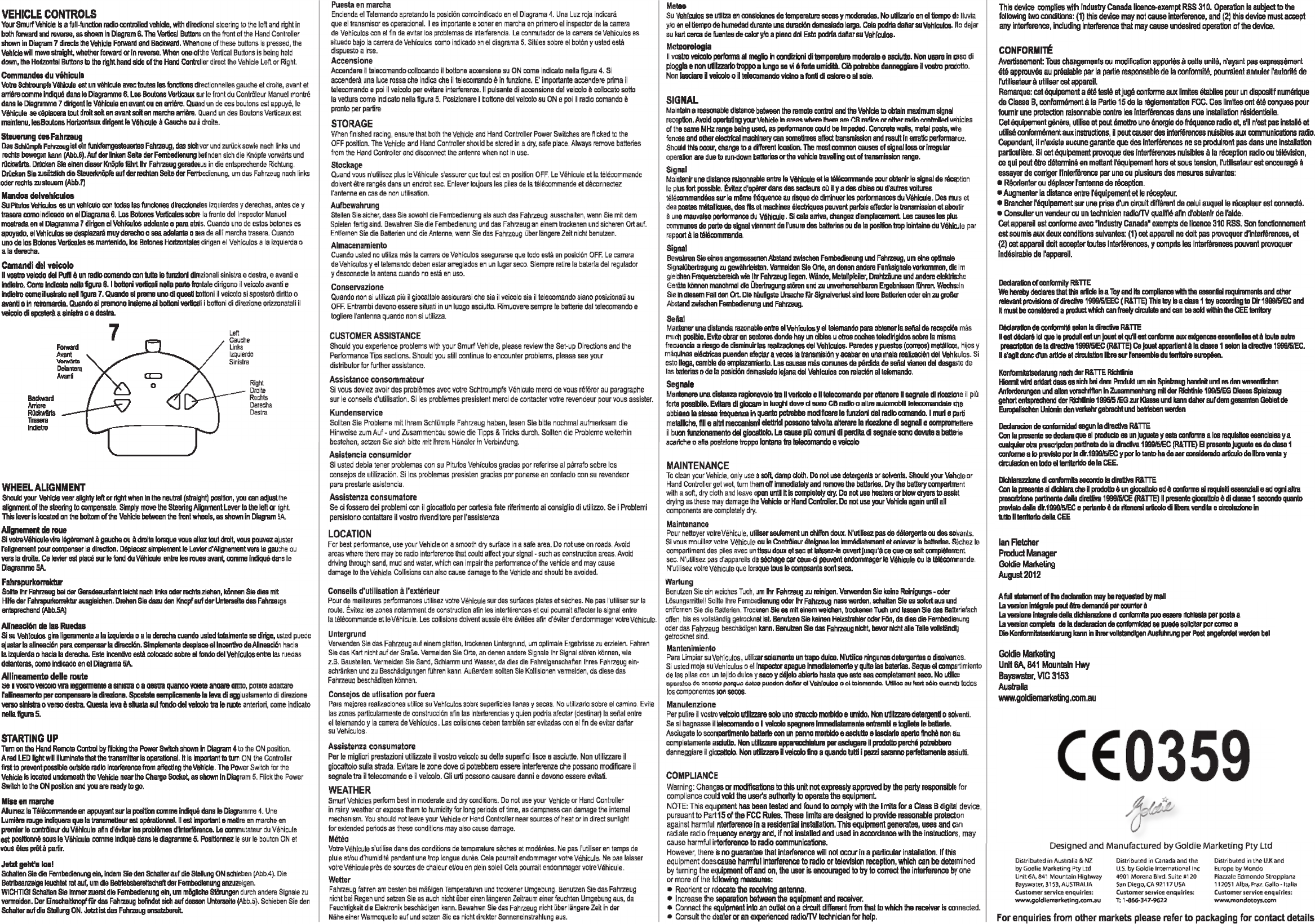 GOLDIE SRC201249T Smurfs 5in RC Vehicle (Gargamobile) User Manual