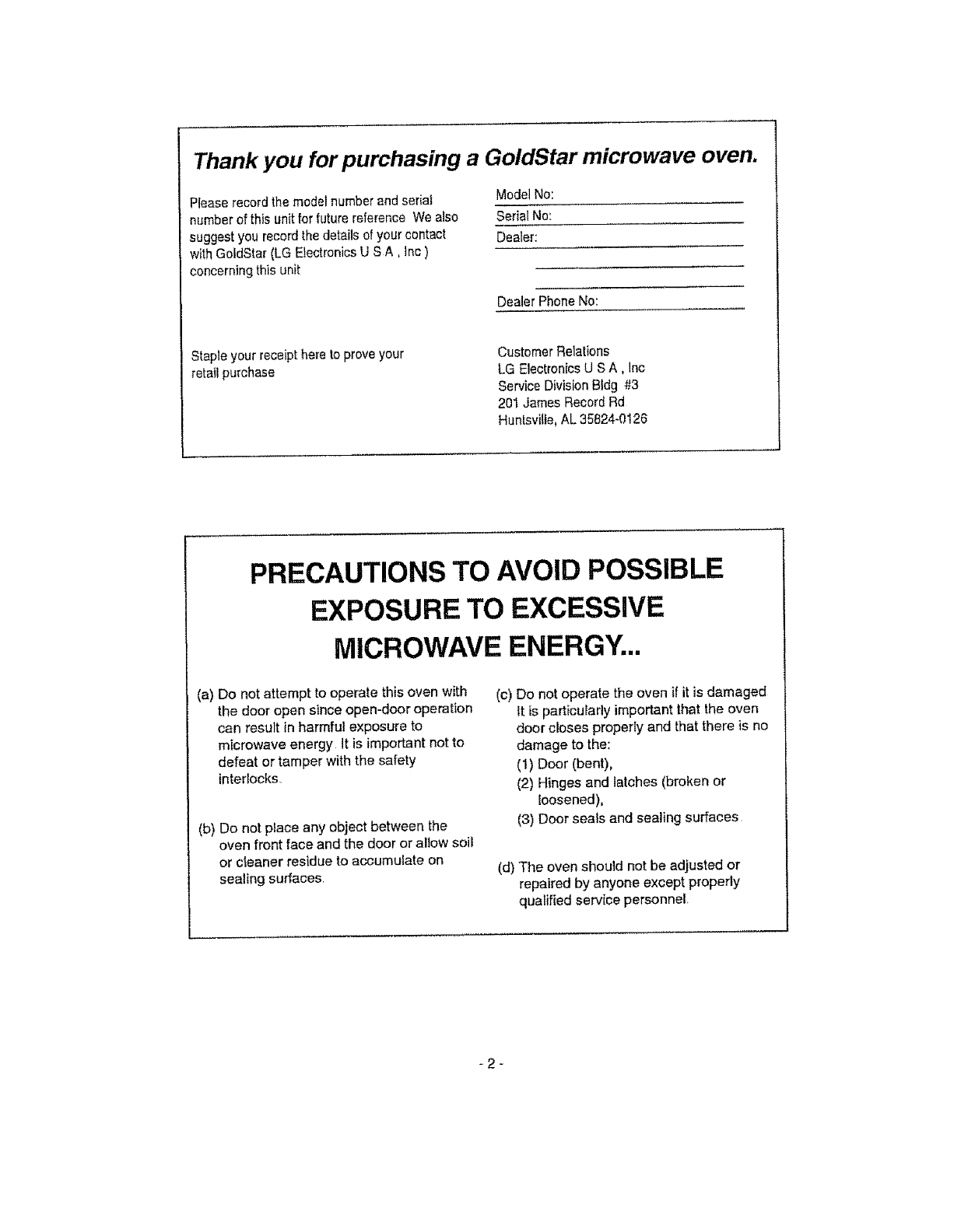 Thank you for purchasing a GoldStar microwave oven.