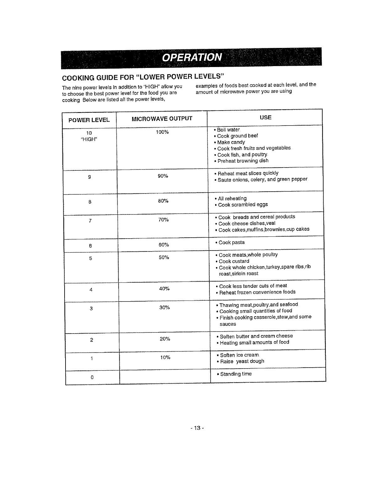 Cooking Guide for "Lower Power Levels" 13