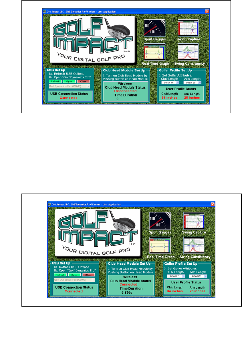 registers with the USB module and the wireless link is enabled. In the “Club Head Set
