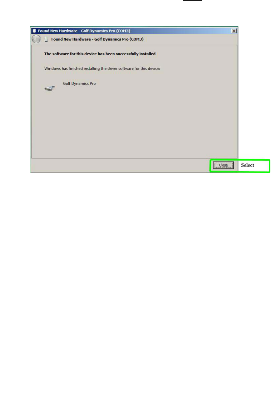 button in the USB set up block. Then you will see “Golf Dynamics Pro (Com#)”