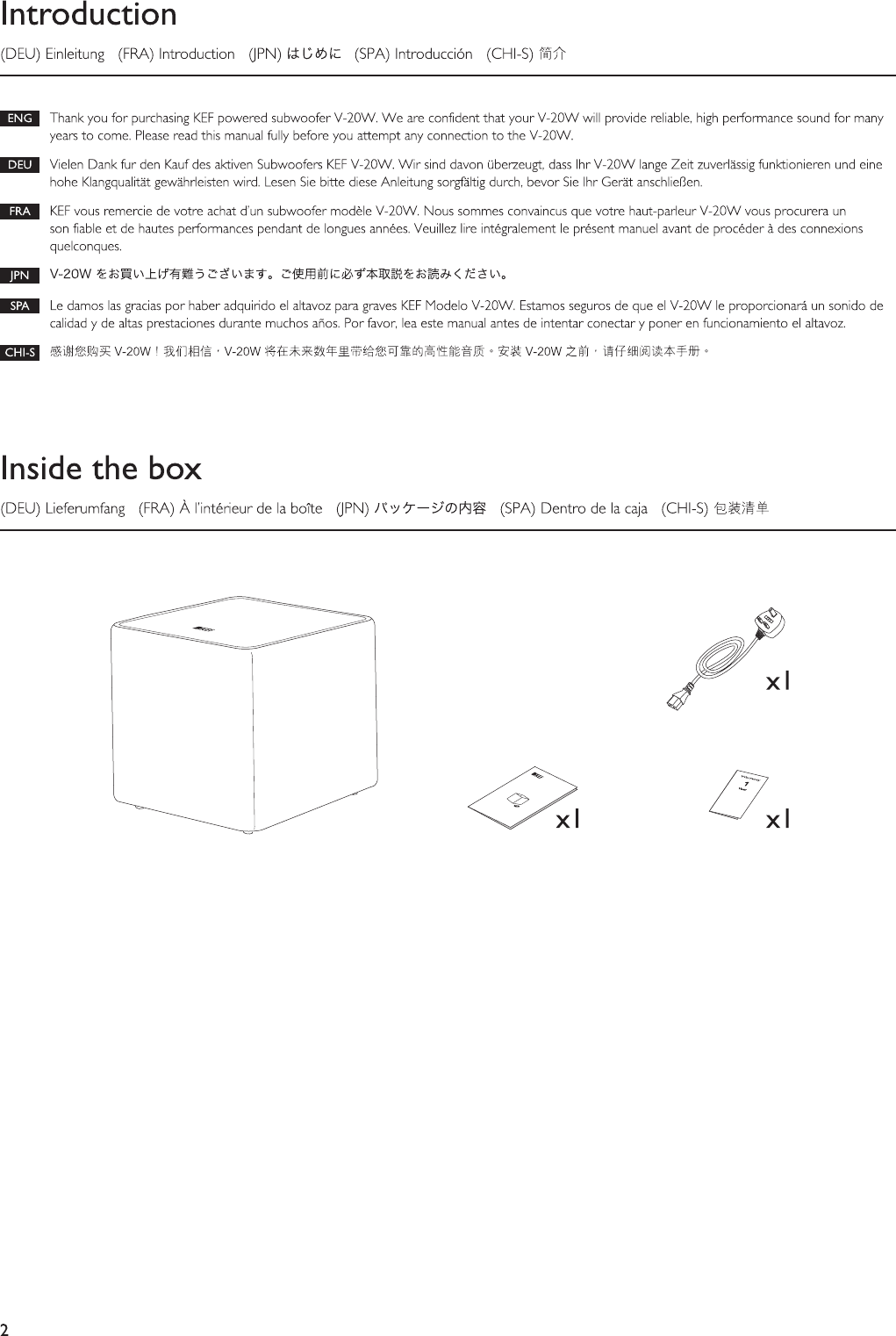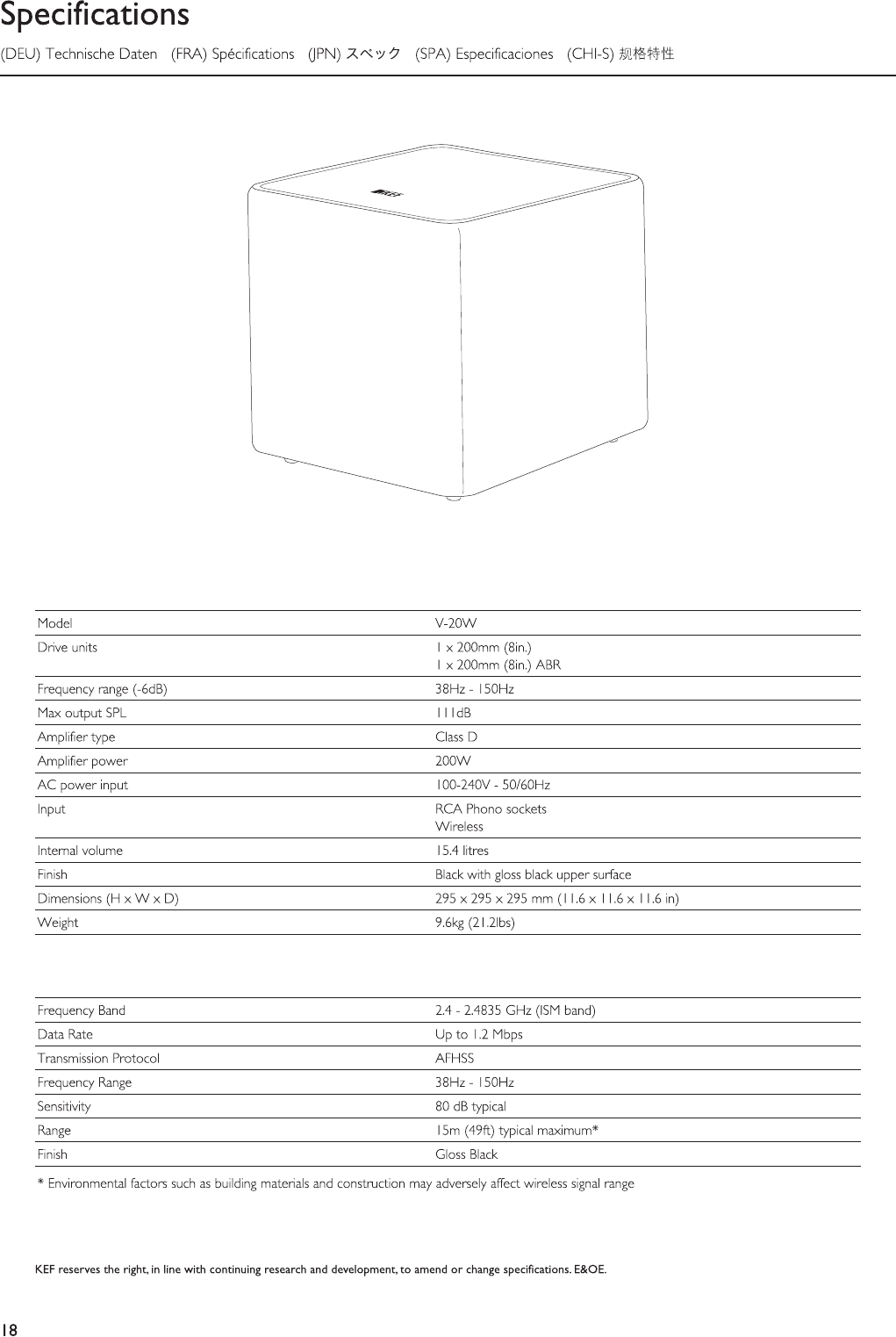 Please take heed of the following before using the KEF Model V-20W.  Note also that the word “appliance” shall refer to the KEF V-20W subwoofer, or any part of it.