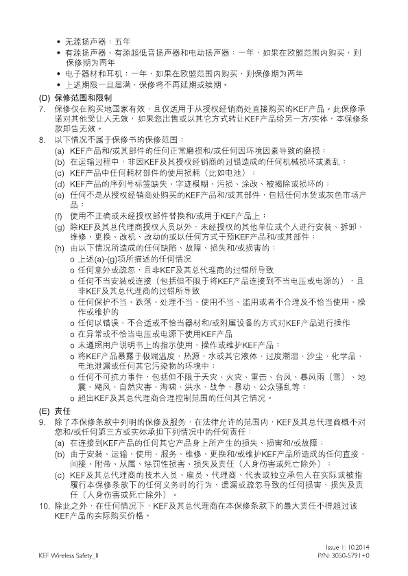 む)をKEFの製品に対して行い事故や故障が起きた場合。