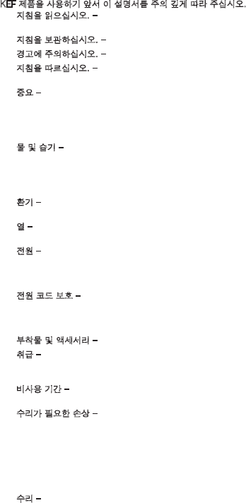수리 – 사용자는 작동 지침에 설명된 것 이외로 기기를 수리해서는 안 됩니다. 모든