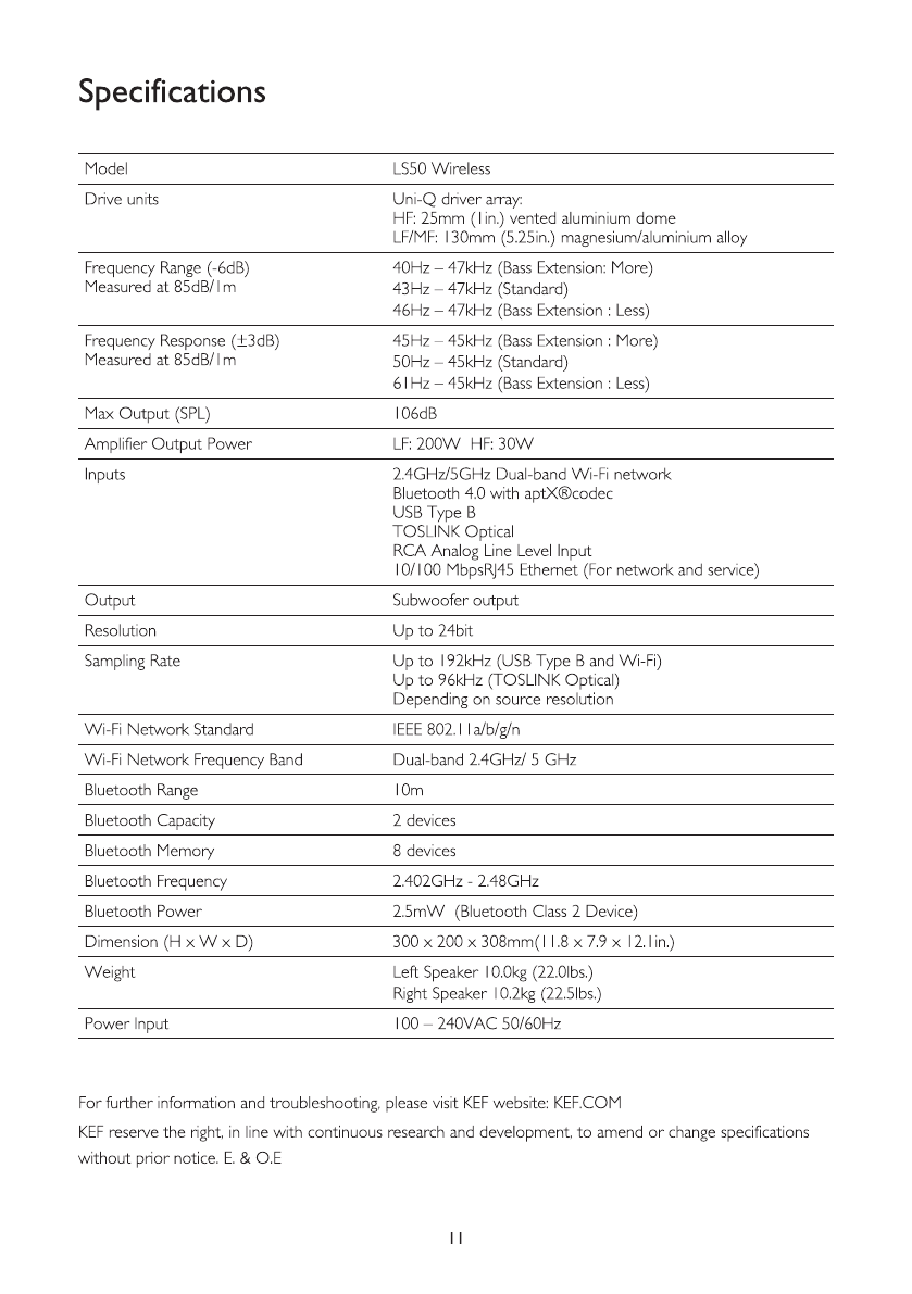 제품  보증서와  안전  지침서를  참고해  주십시오.  기타  다른  서비스와  관련해서는  KEF