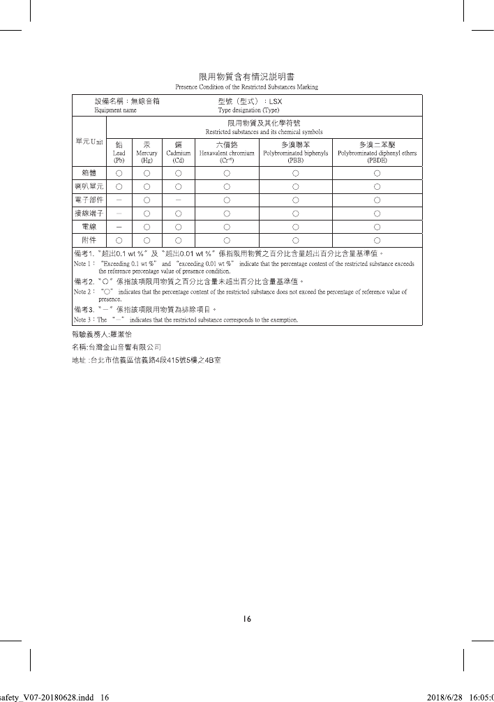 GP Electronics (HK) Limited. Wireless Speaker LSX safety manual V07 20180628