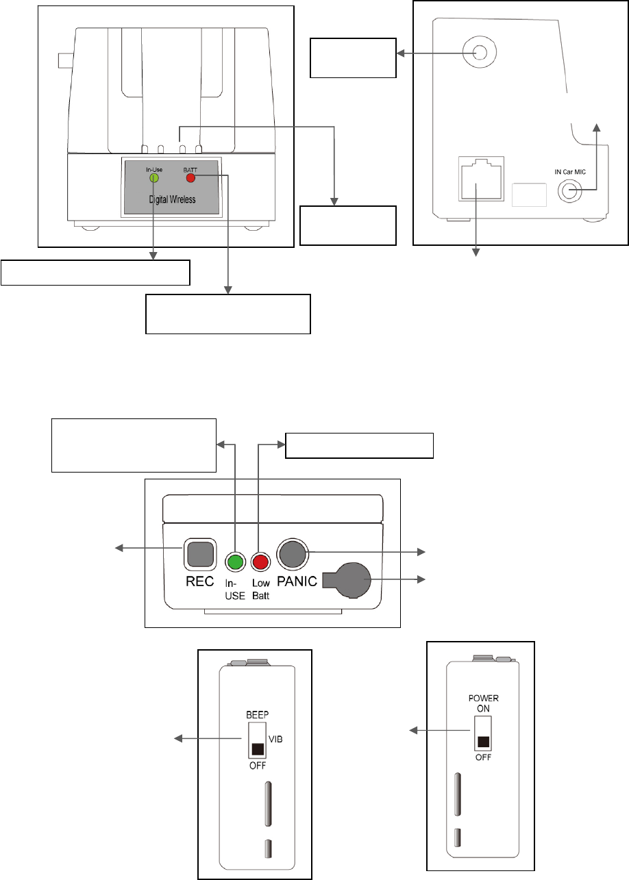 2) When you remove Transmitter from the cradle, The TR and Base’s In-USE LED will light a constant