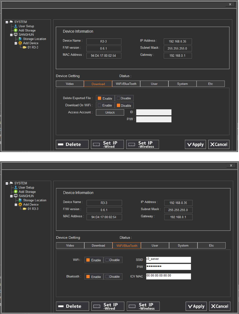 Device Setting (video, download, Wi-Fi and Bluetooth, system and etc)