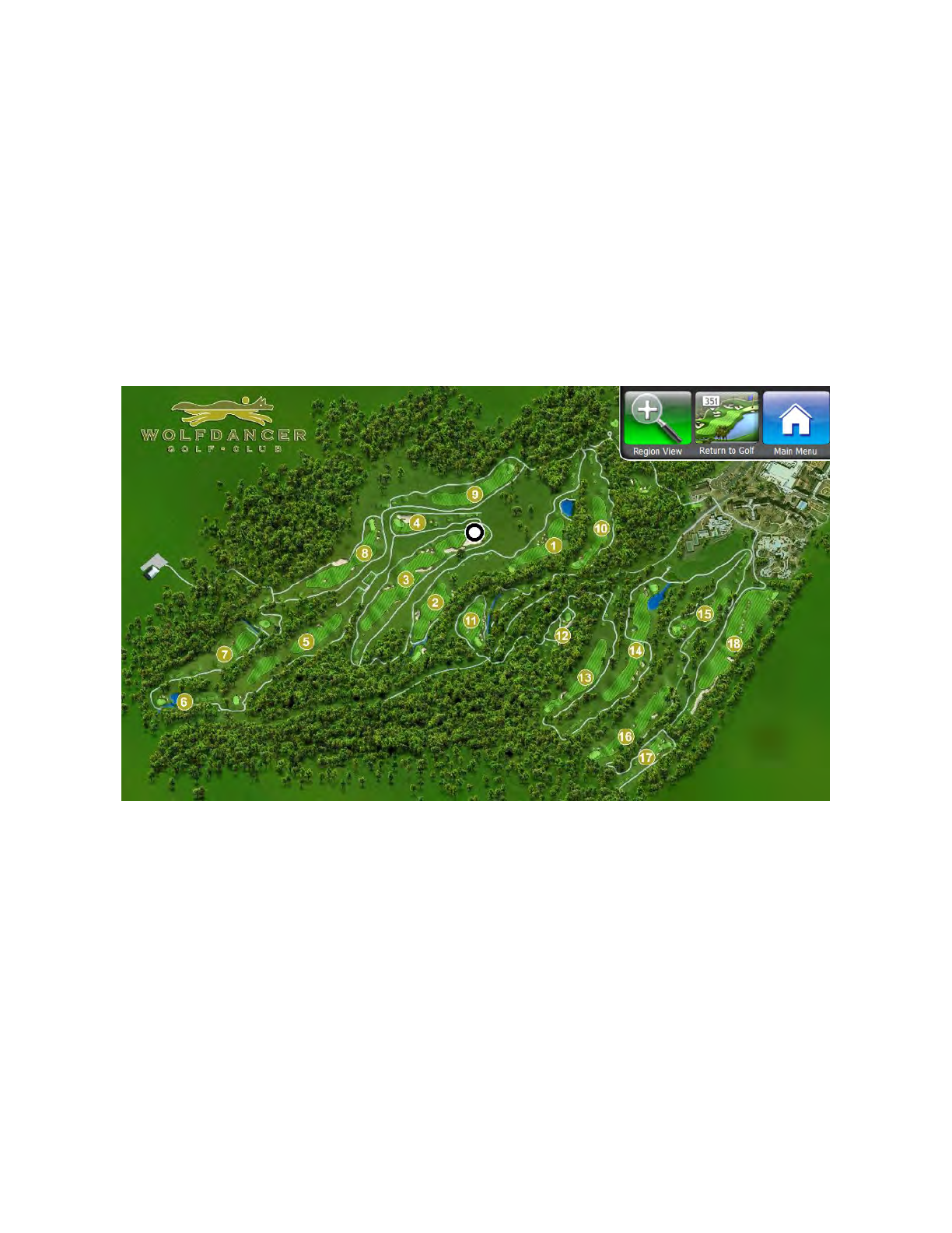 The main screen that golfers will interact with is the Golf Map screen. This screen shows a map of the current hole and