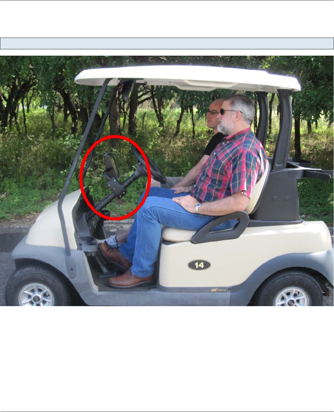 Your position is shown on the screen with an icon of a golf car. Note that other golf cars’ positions are not shown.