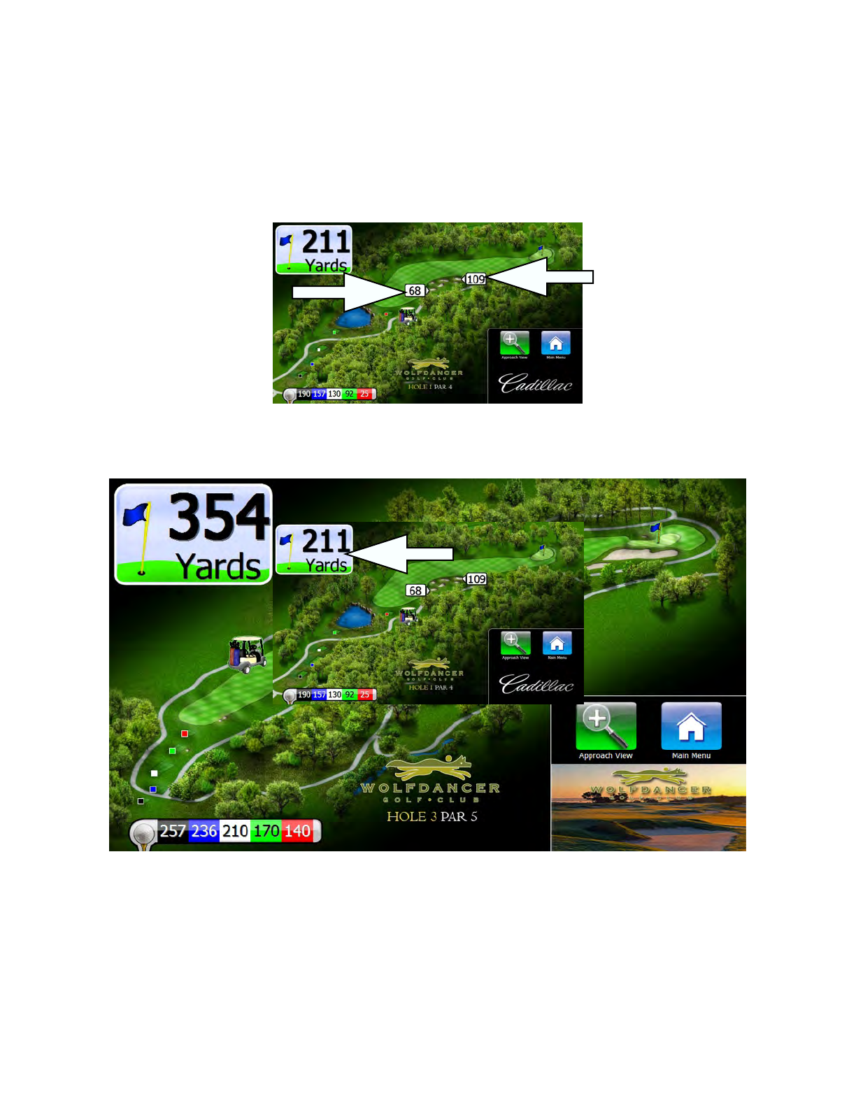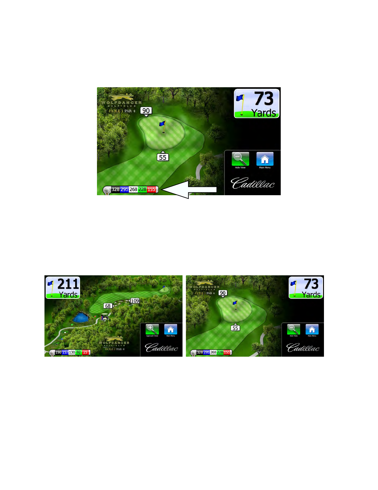 placement for that hole. If no pin placement is defined, the box will show the yardage to the center of the green, and the