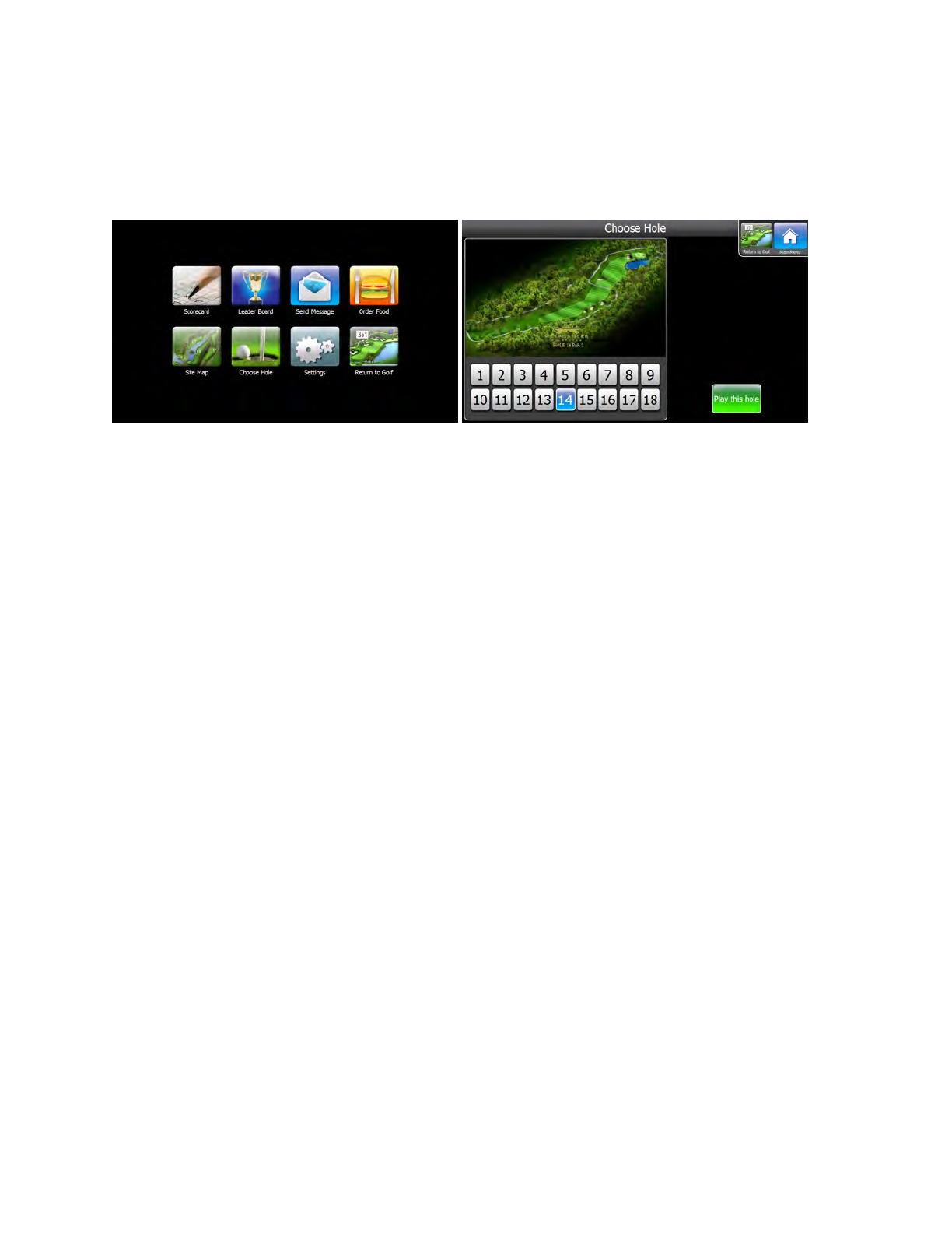 screen, touch the number of the hole you would like to play, then press “Play this Hole.” The Visage VDU will show a