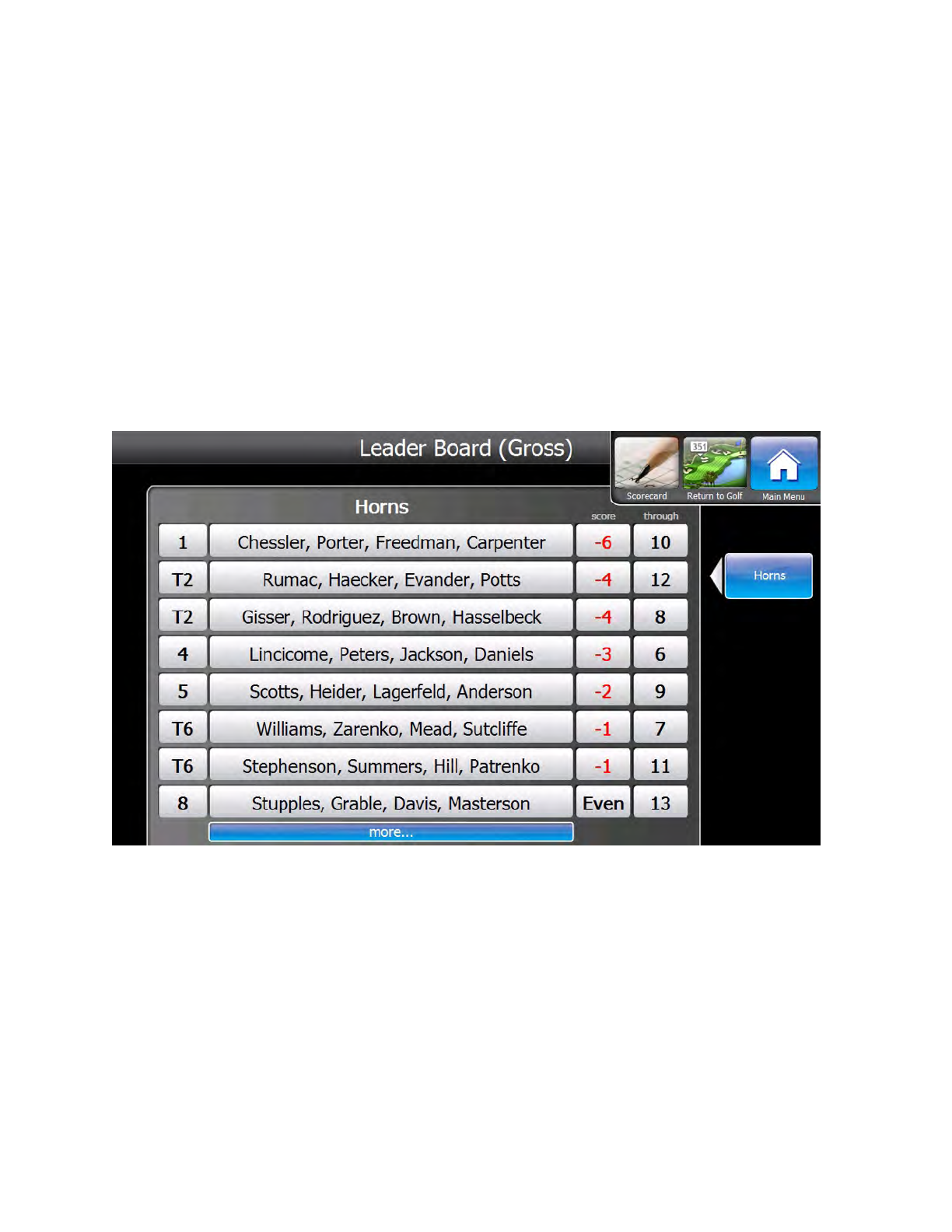 To access the scorecard at other times, go to the Main Menu, then press the Scorecard button.