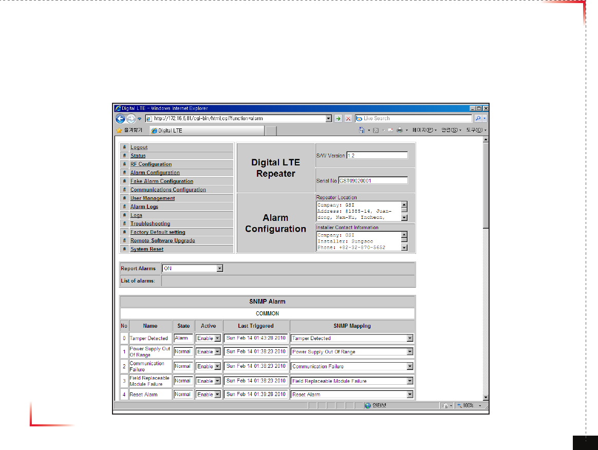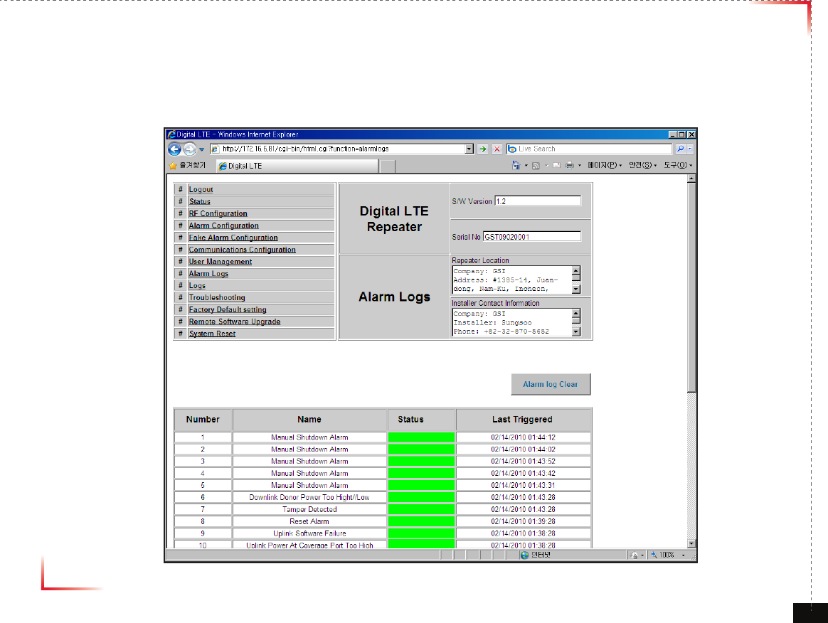 • You can see Alarm Logs regarding Web UI operation. Logs will maintain a history of up to 30 operations.