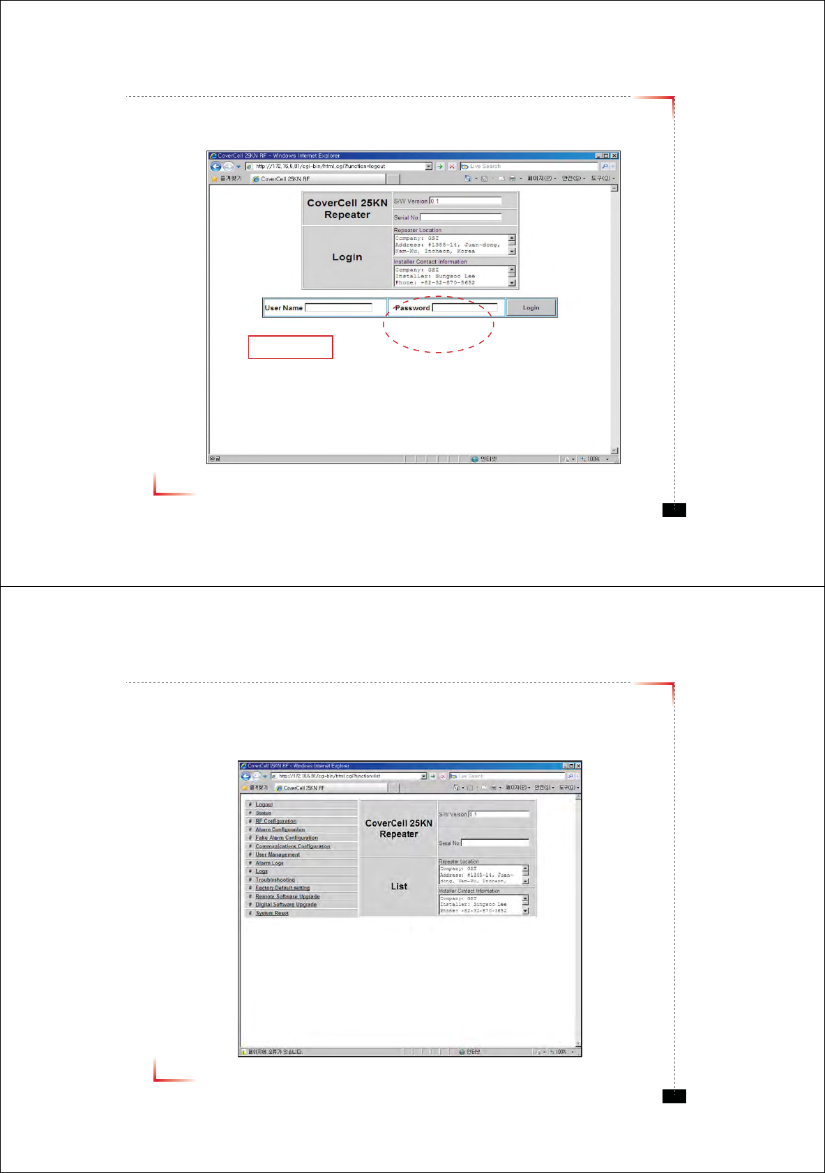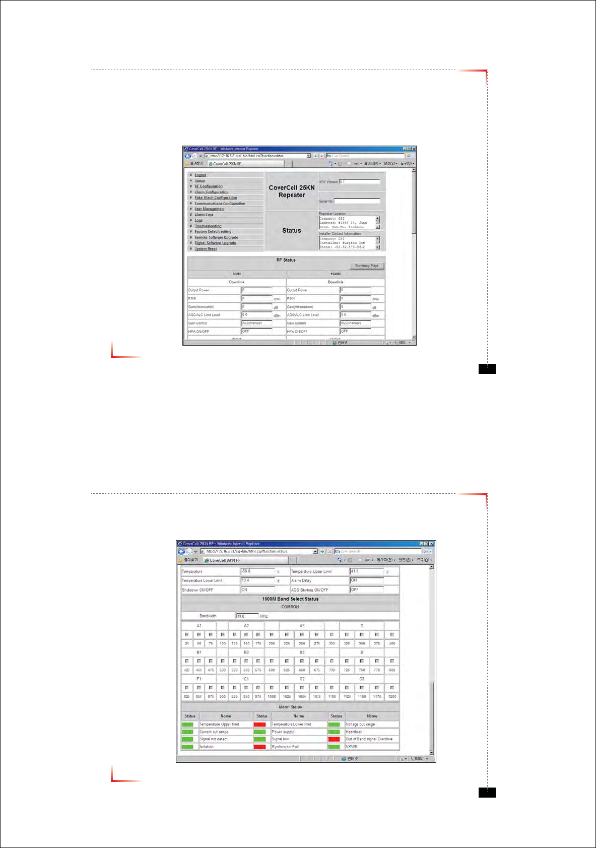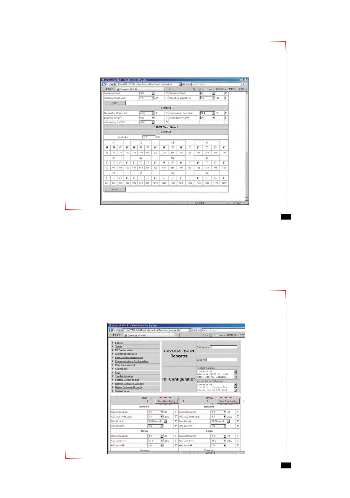 • The default values in various fields will differ with different models of Covercell 25KN Repeaters.