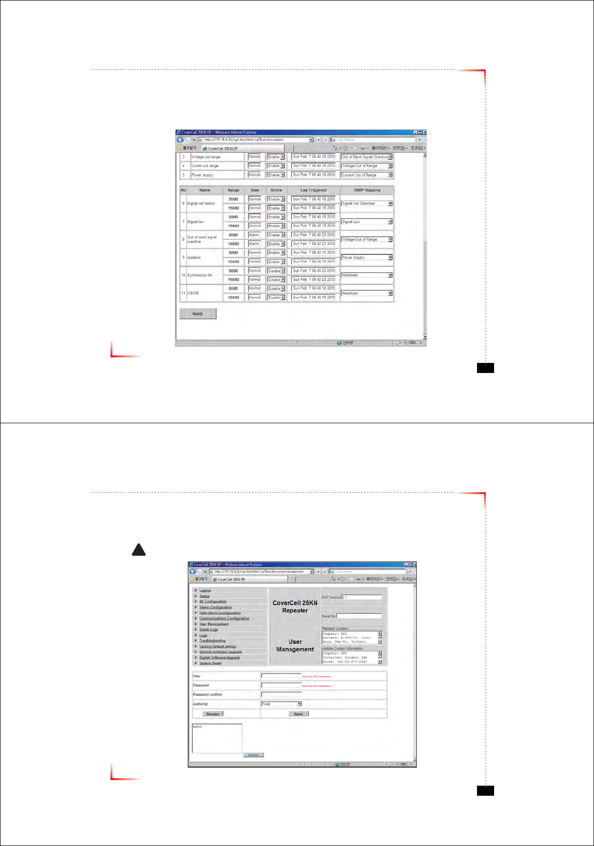 •The default values in various fields will differ with different models of Covercell 25KN Repeaters.