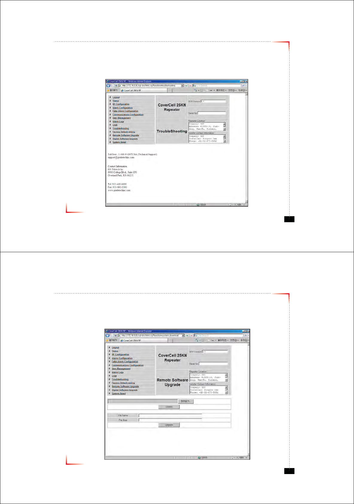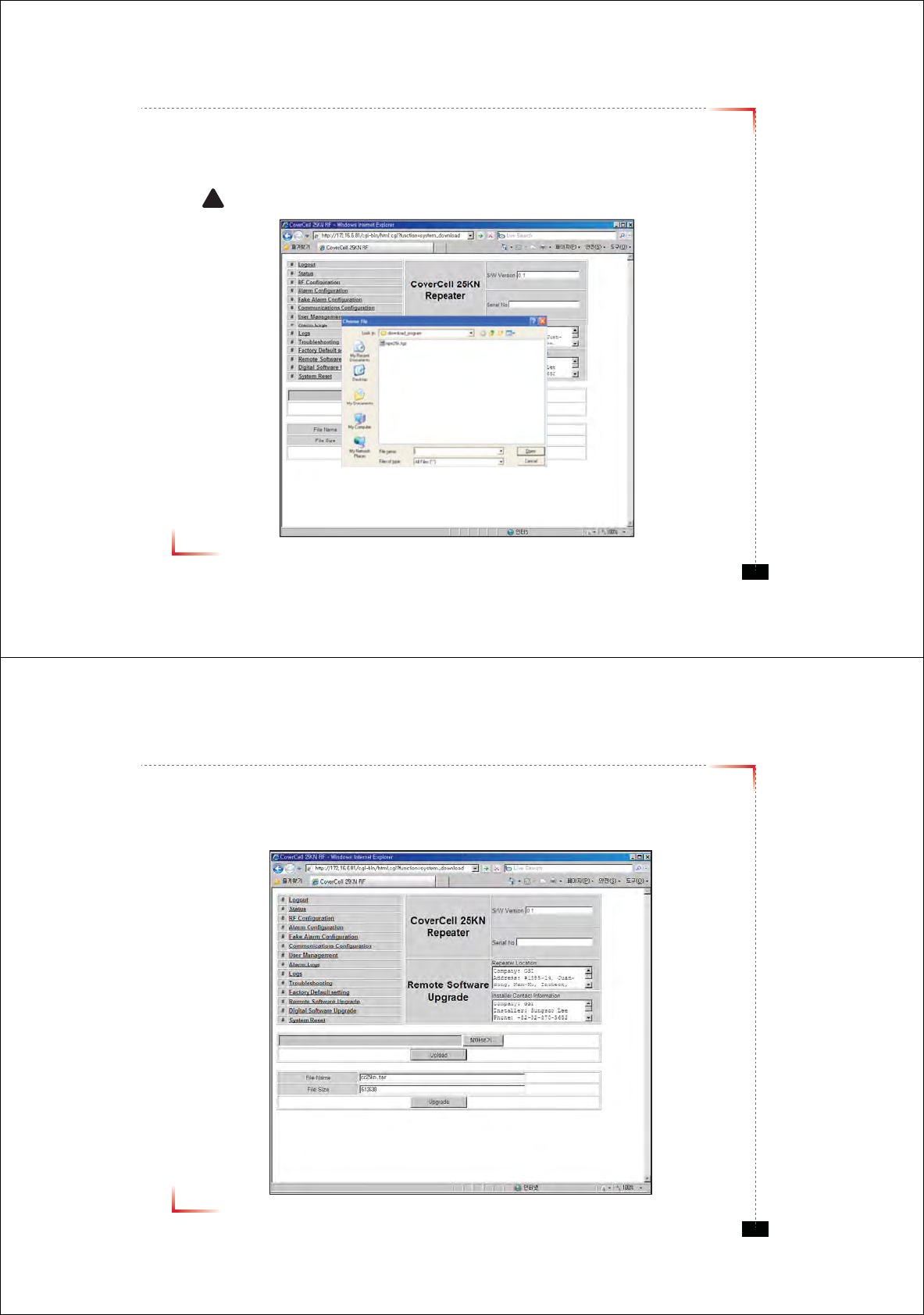 • In case that software upgrade is needed, you should use this page.