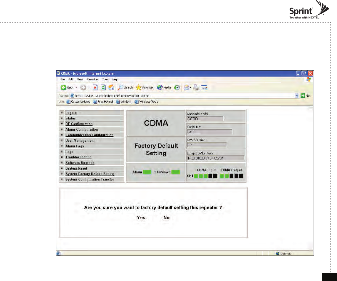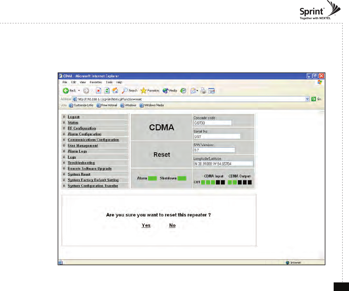 • Click 'Yes' to reset the repeater via a soft-boot. This will not change any of the current settings.