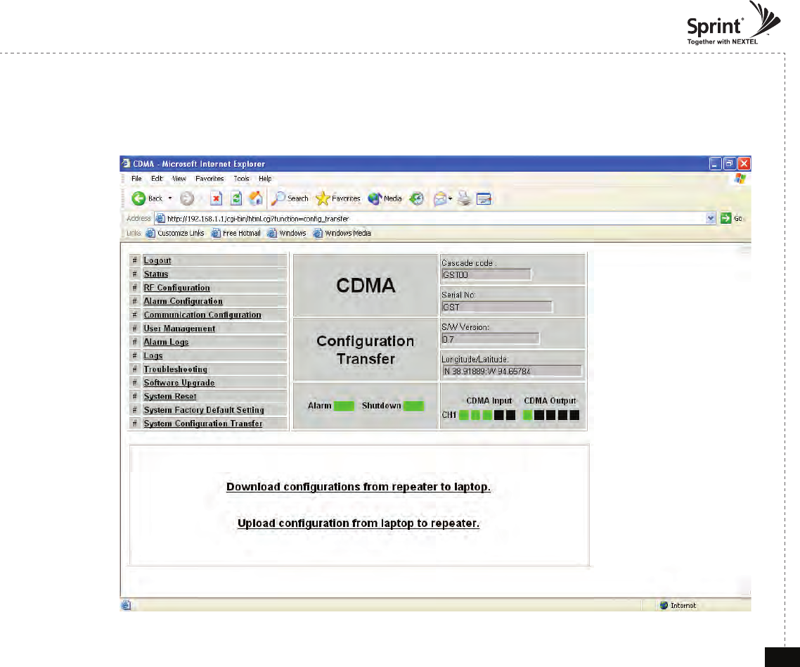 • Configuration Transfer function is for downloading and uploading set values of the repeater.